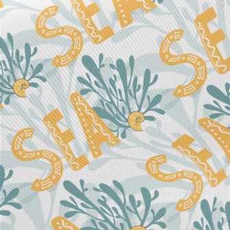黃色海洋英文與植物高爾布(幅寬180公分)