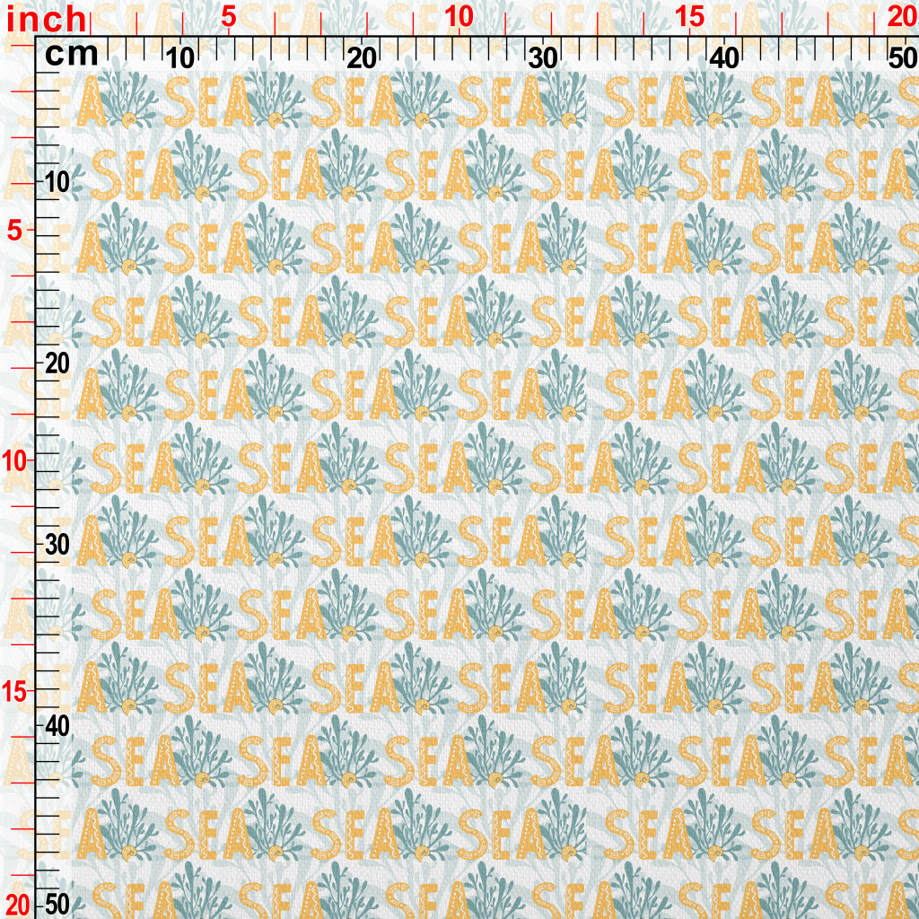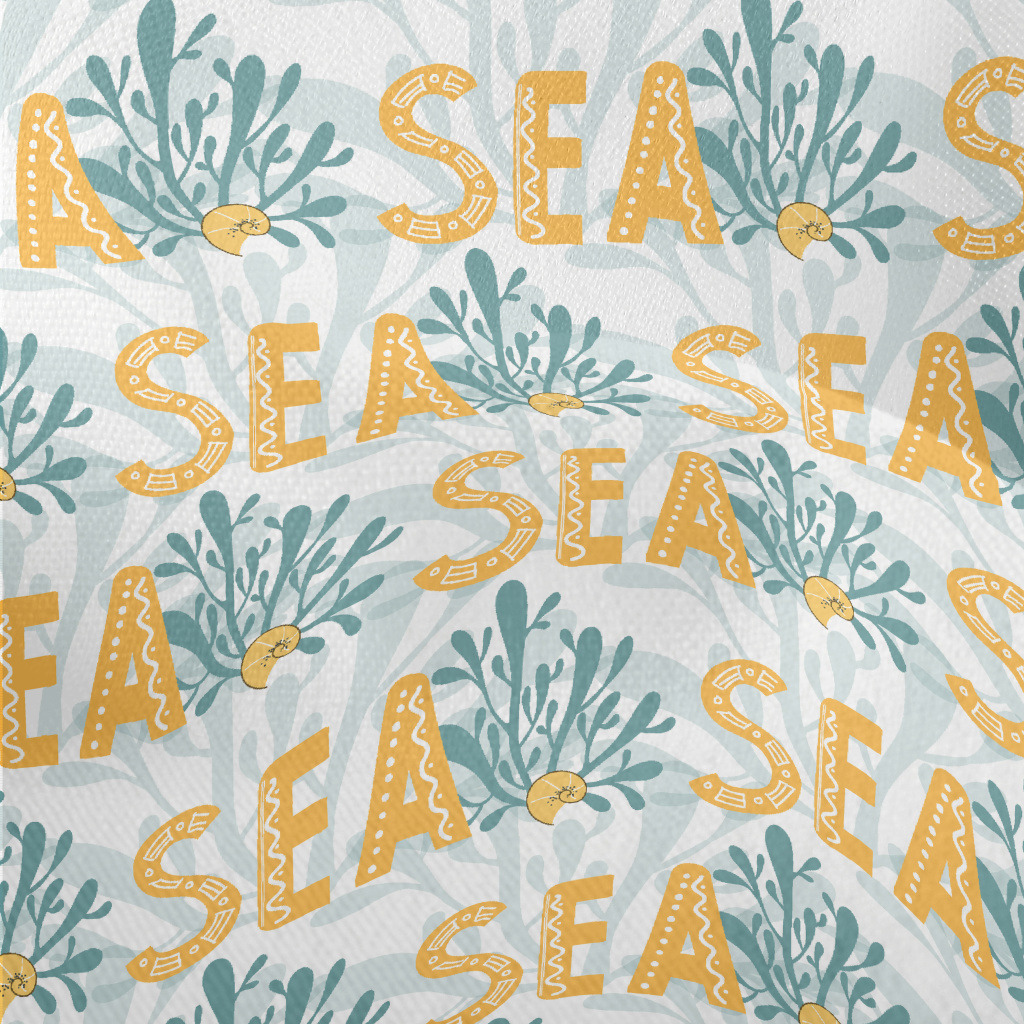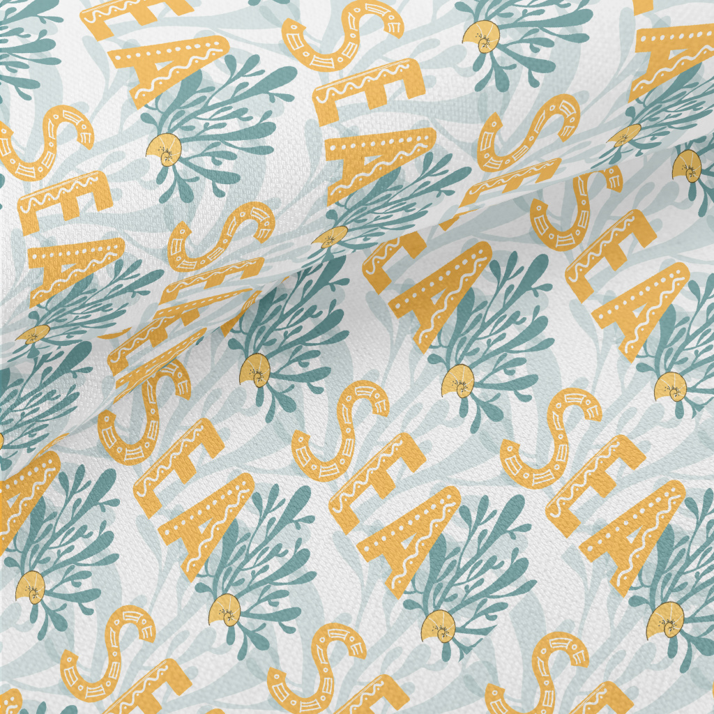 黃色海洋英文與植物竹節麻(幅寬150公分)