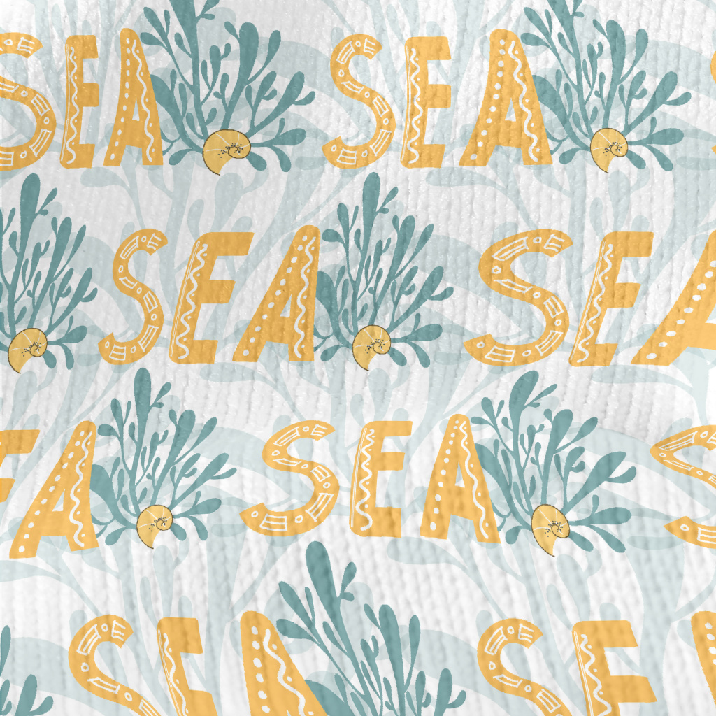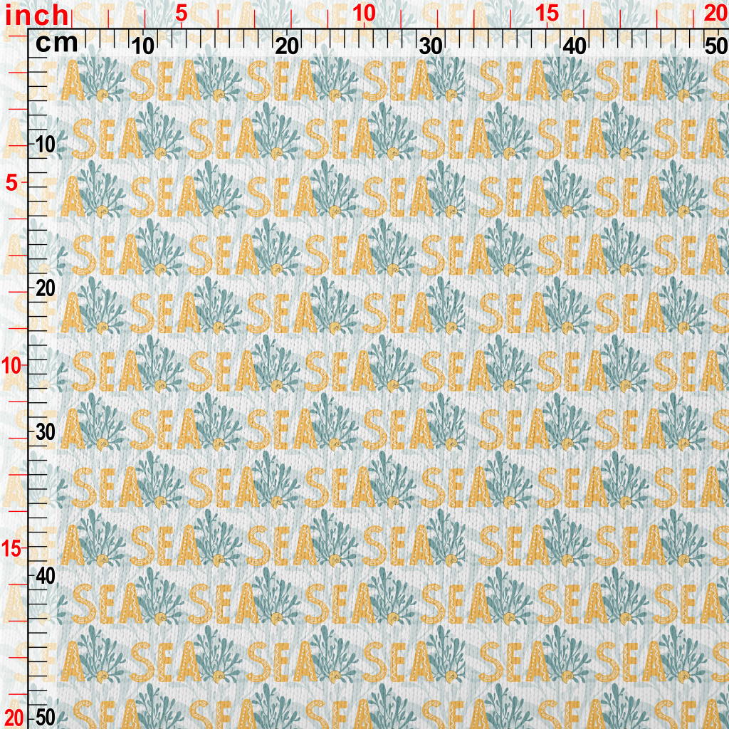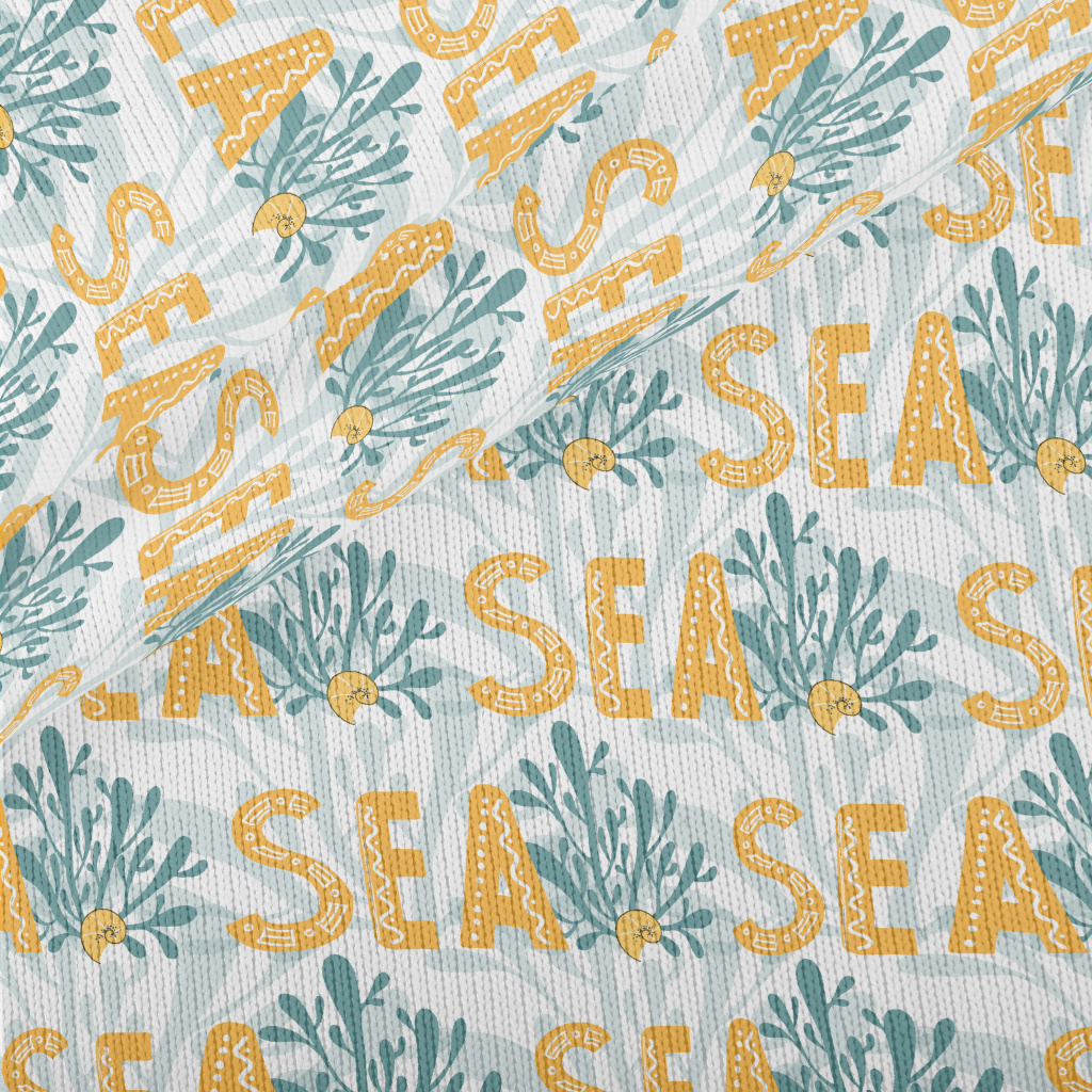 黃色海洋英文與植物仿毛衣布(幅寬150公分)