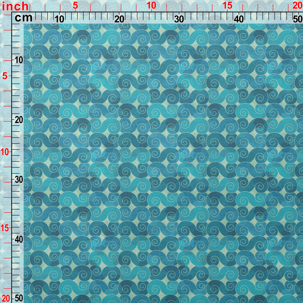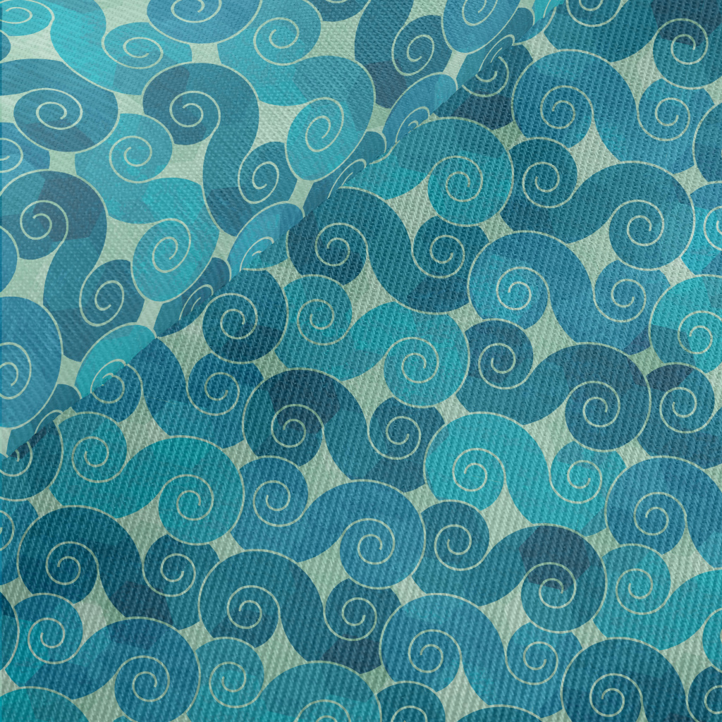 藍色復古螺旋紋圖案厚棉布(幅寬150公分)