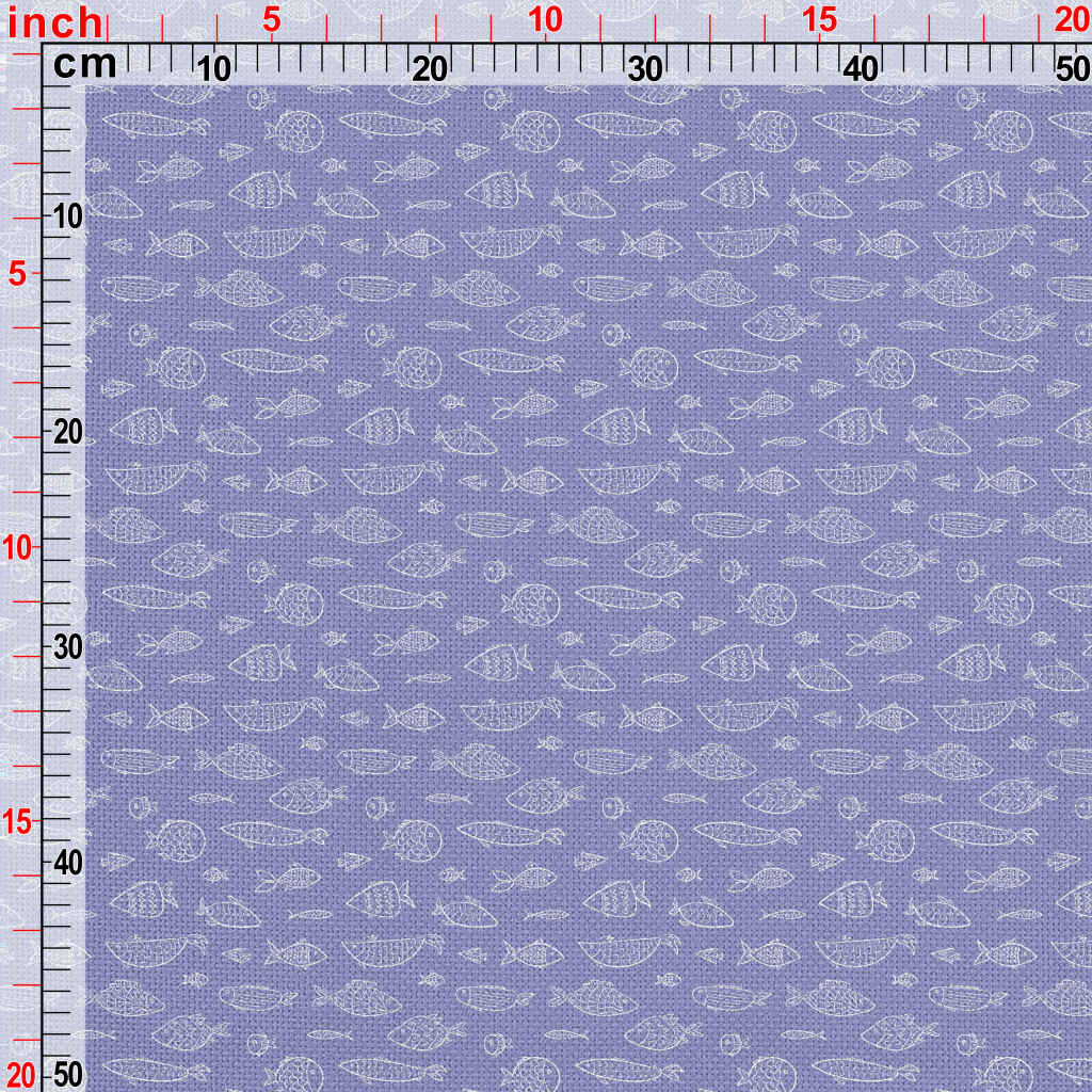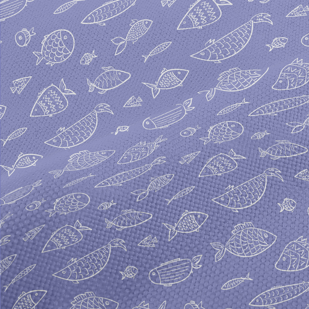 白色線條魚群麻布(幅寬150公分)
