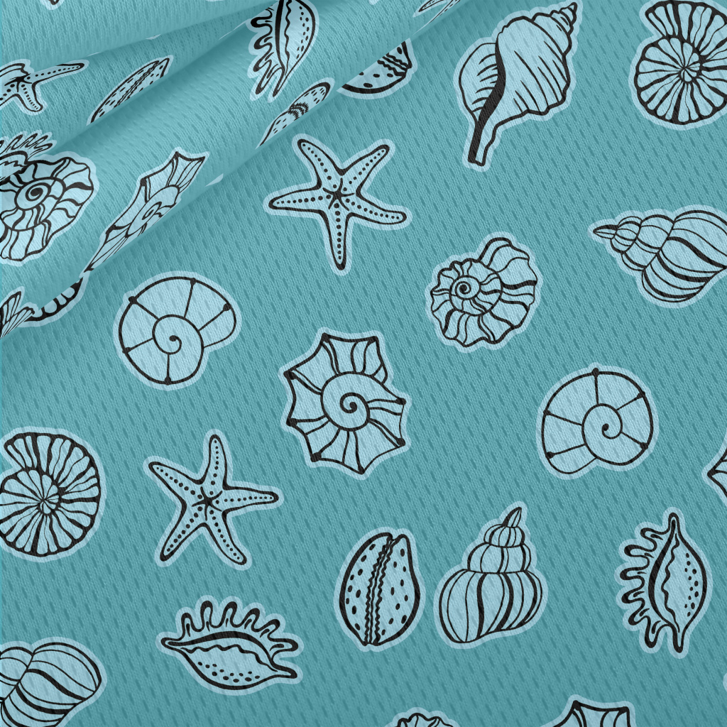 藍色手繪貝殼海星鳥眼布(幅寬160公分)