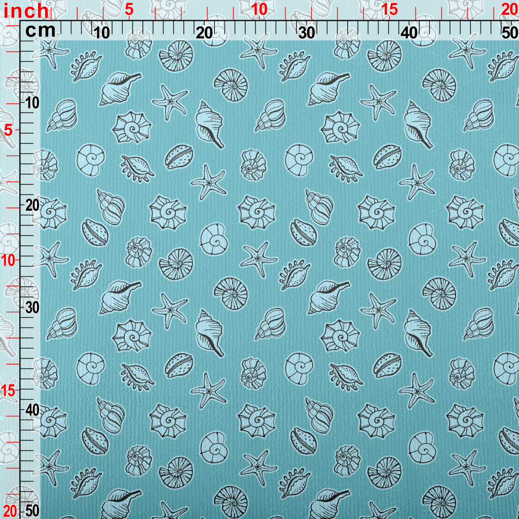 藍色手繪貝殼海星毛巾布(幅寬160公分)