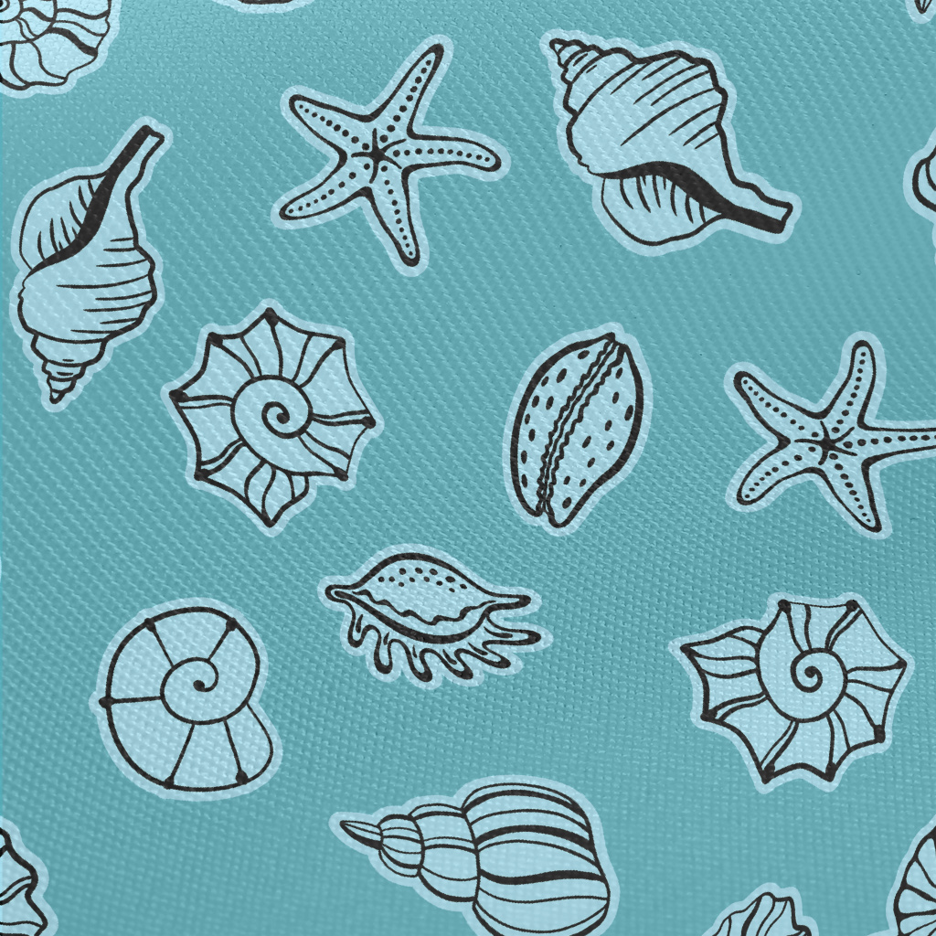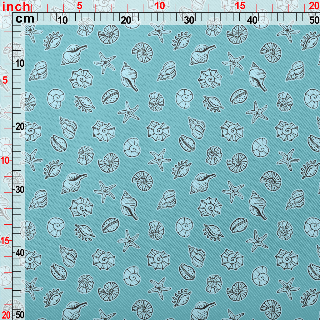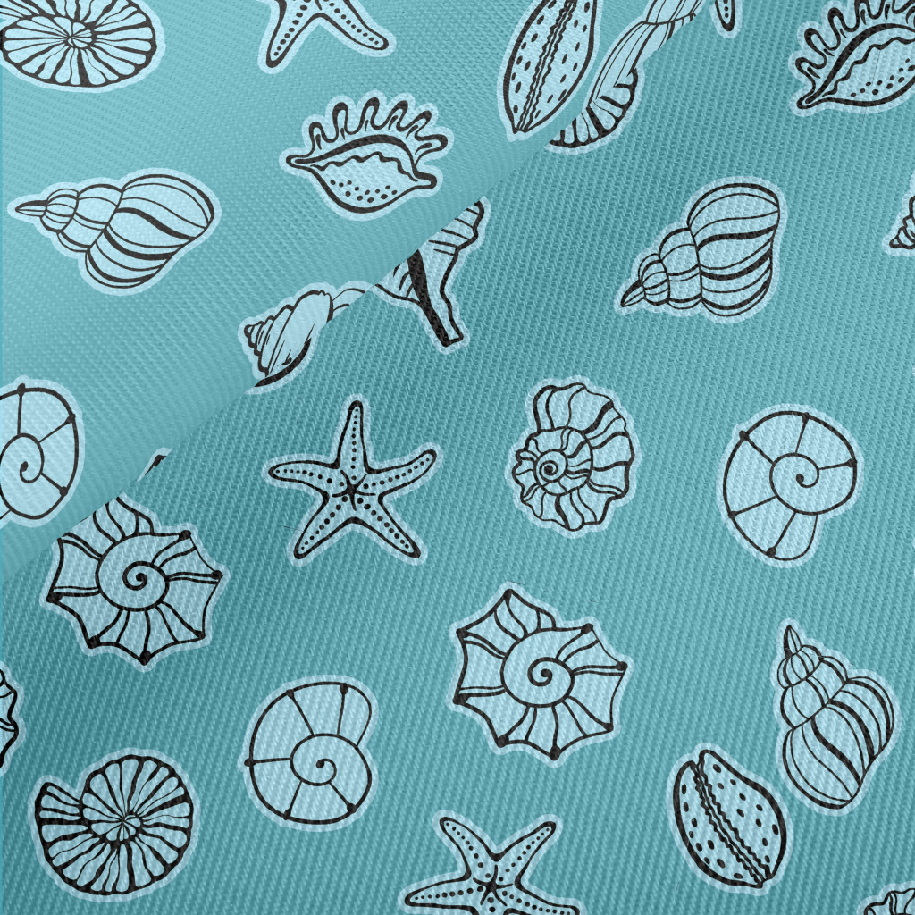 藍色手繪貝殼海星斜紋布(幅寬150公分)