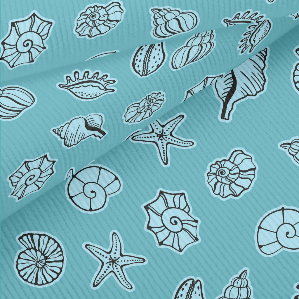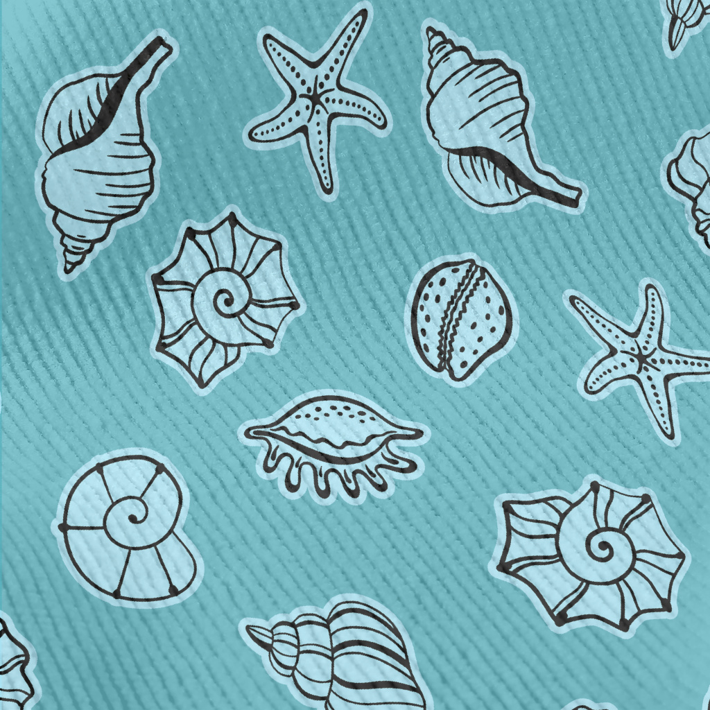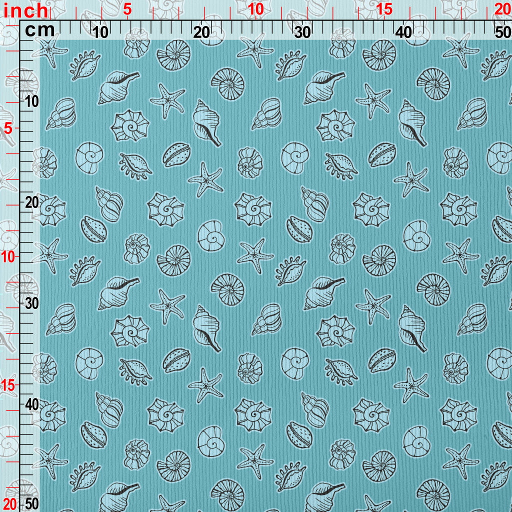 藍色手繪貝殼海星燈芯絨(幅寬150公分)