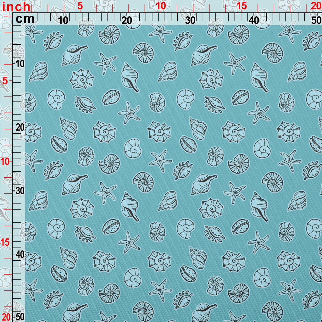 藍色手繪貝殼海星雙斜布(幅寬150公分)