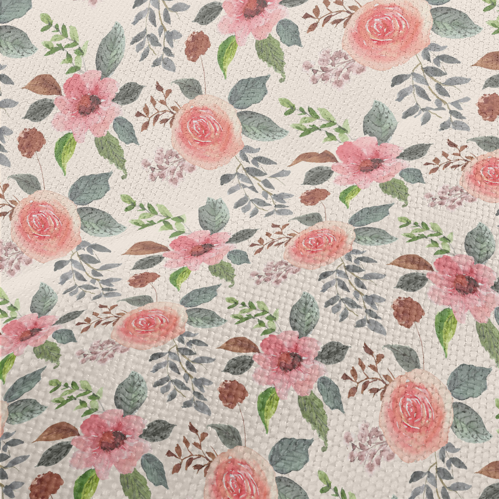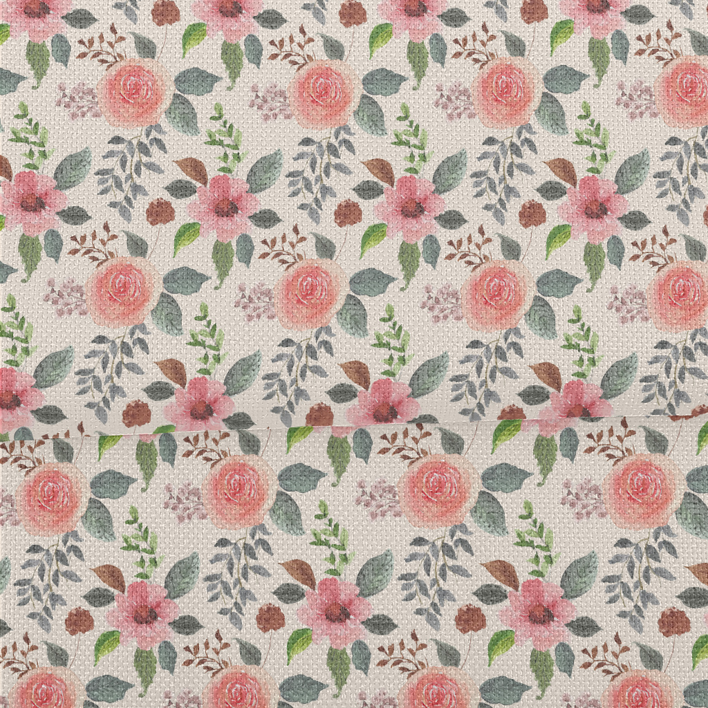 水彩艷麗花卉麻布(幅寬150公分)