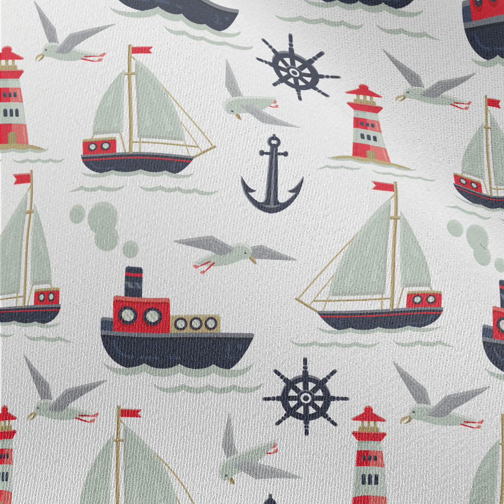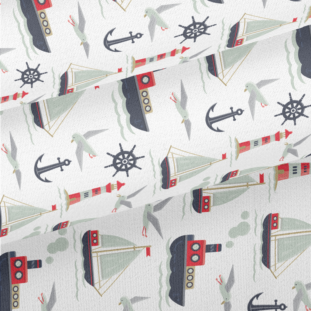 帆船輪船船舵燈塔海鷗雪紡布(幅寬150公分)