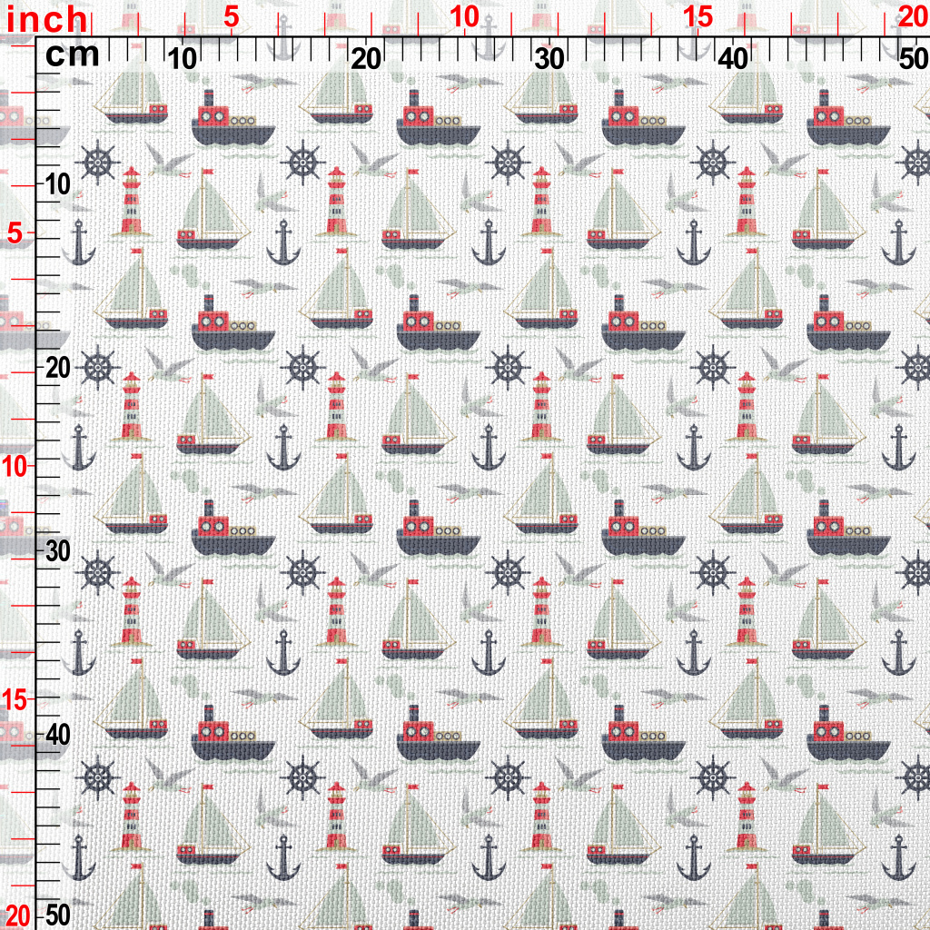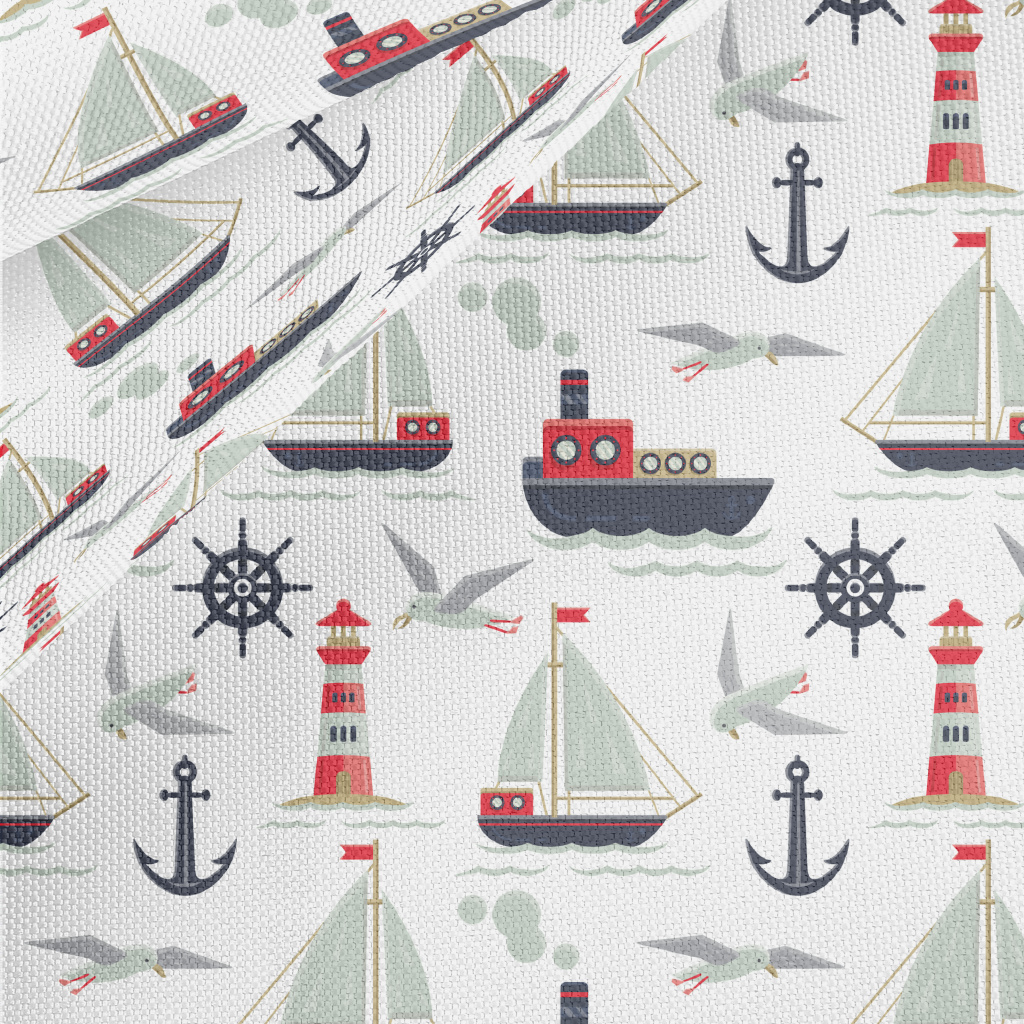 帆船輪船船舵燈塔海鷗牛津布(幅寬150公分)