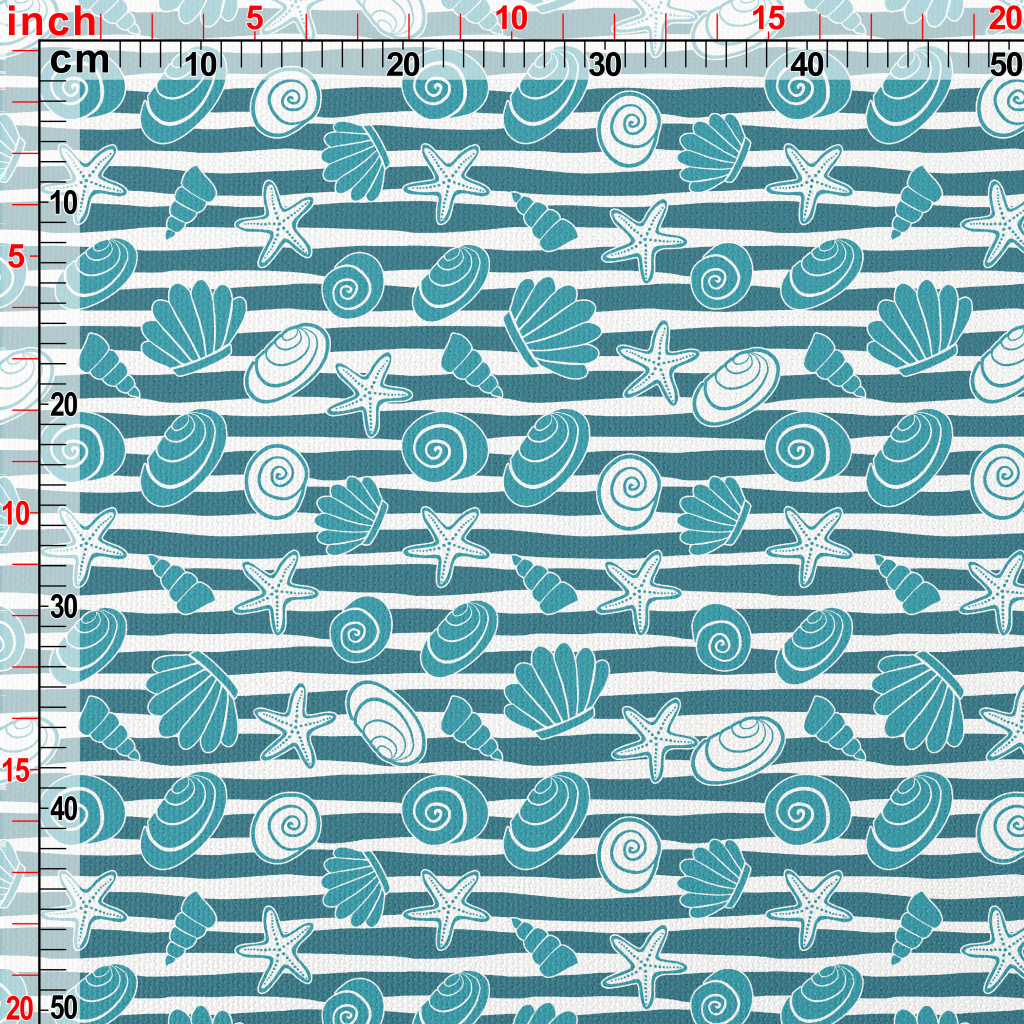 塗鴉藍色貝類海星帆布(幅寬150公分)