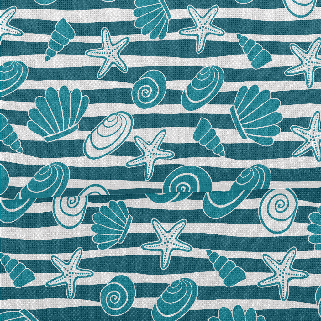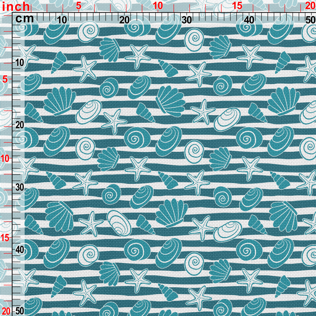 塗鴉藍色貝類海星麻布(幅寬150公分)