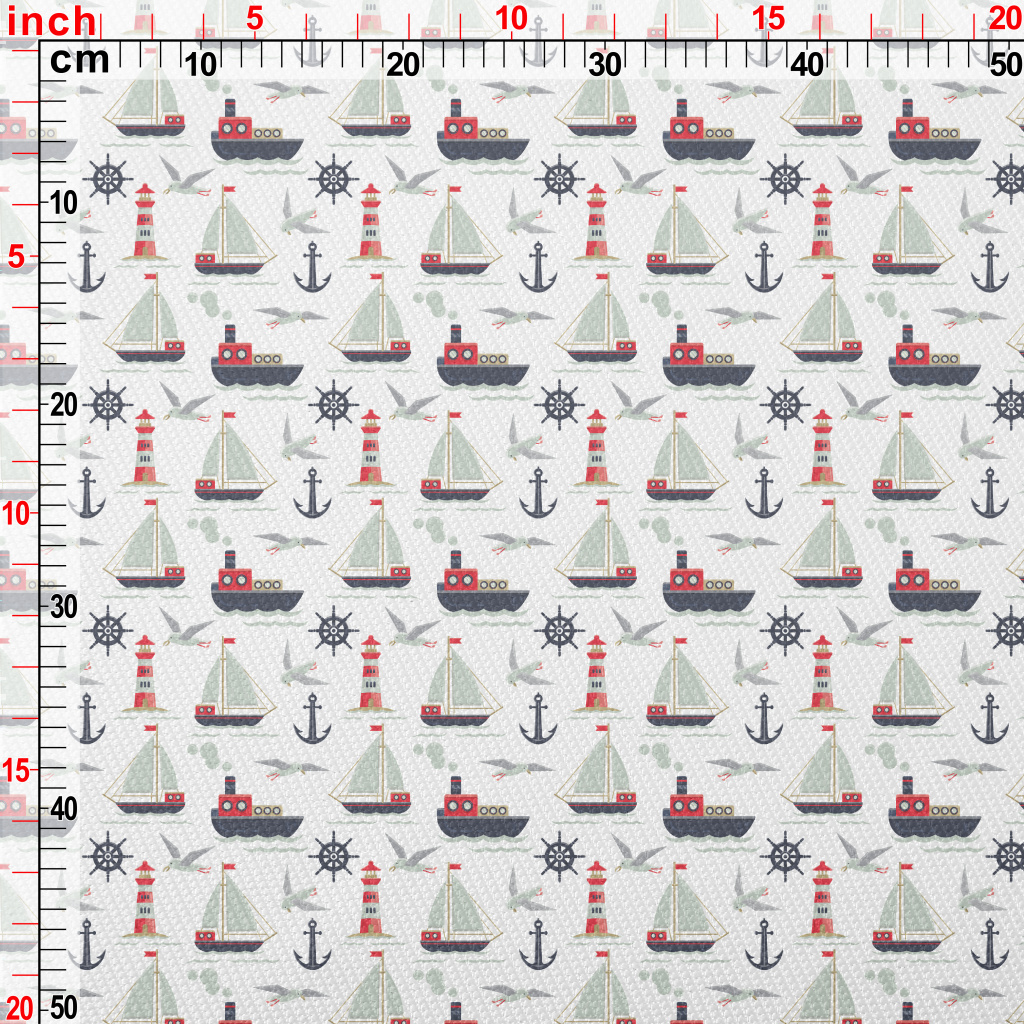 帆船輪船船舵燈塔海鷗雙斜布(幅寬150公分)