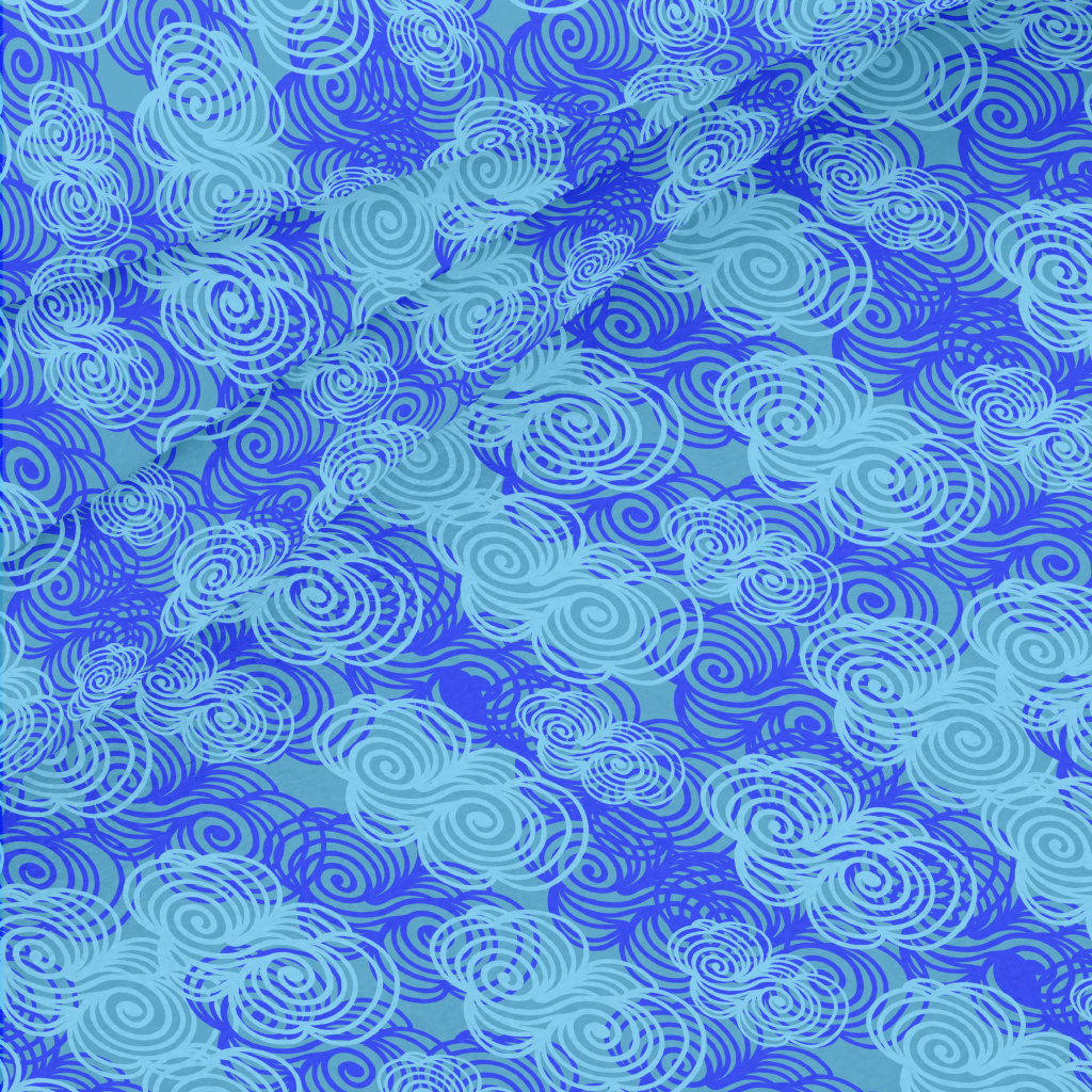 藍色雲朵漩渦圖案水晶絨(幅寬160公分)