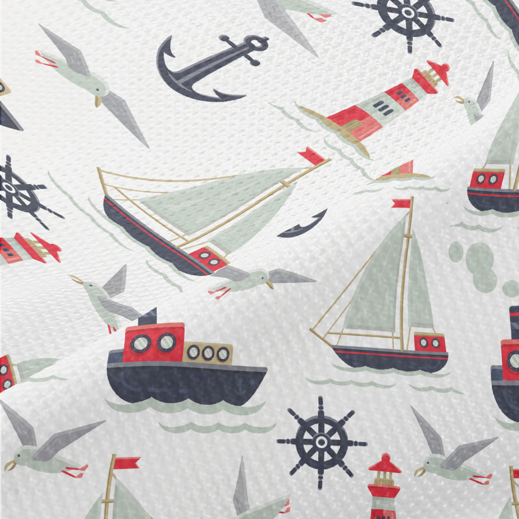 帆船輪船船舵燈塔海鷗高爾布(幅寬180公分)