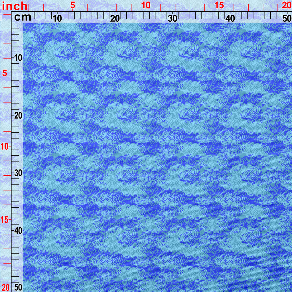 藍色雲朵漩渦圖案春亞紡(幅寬160公分)