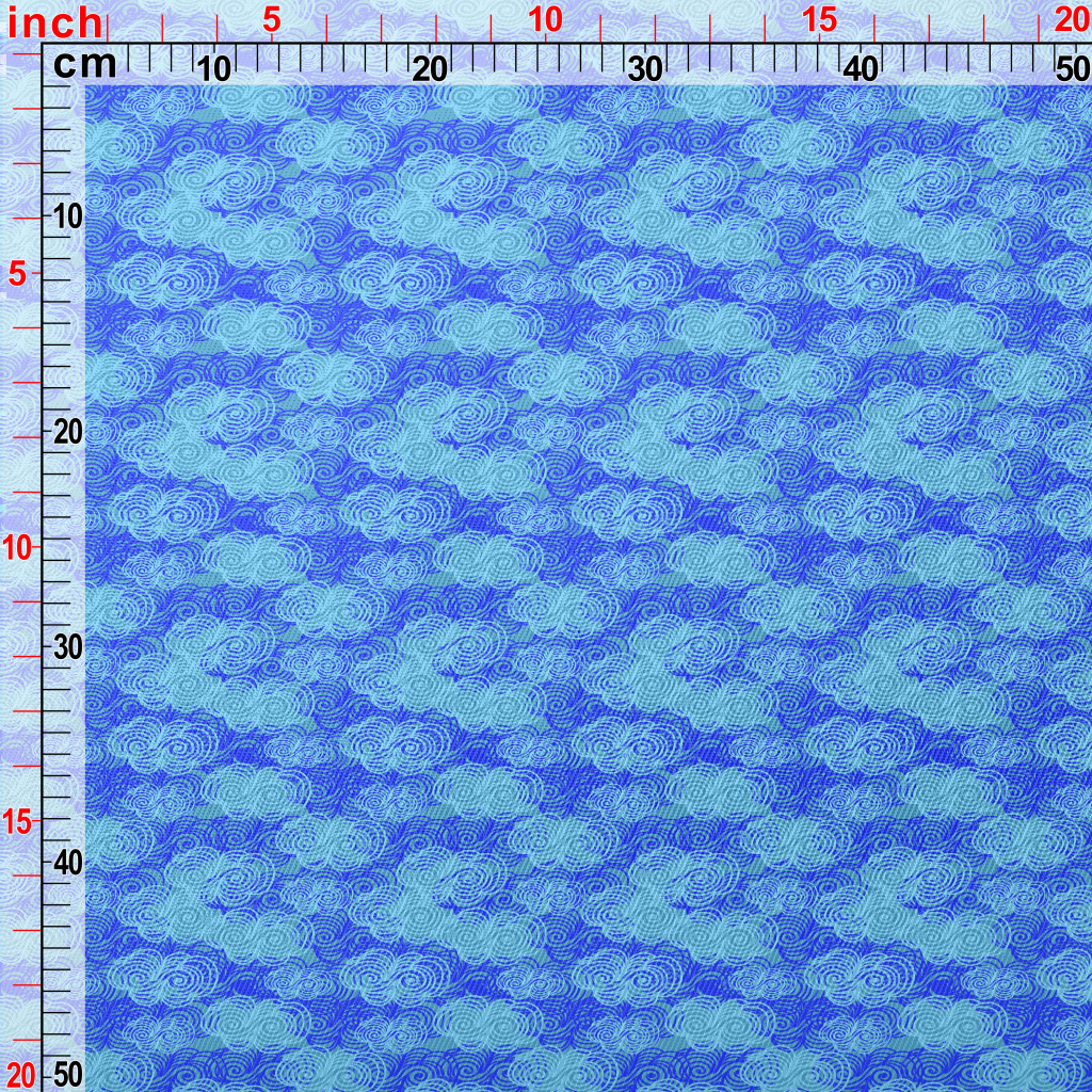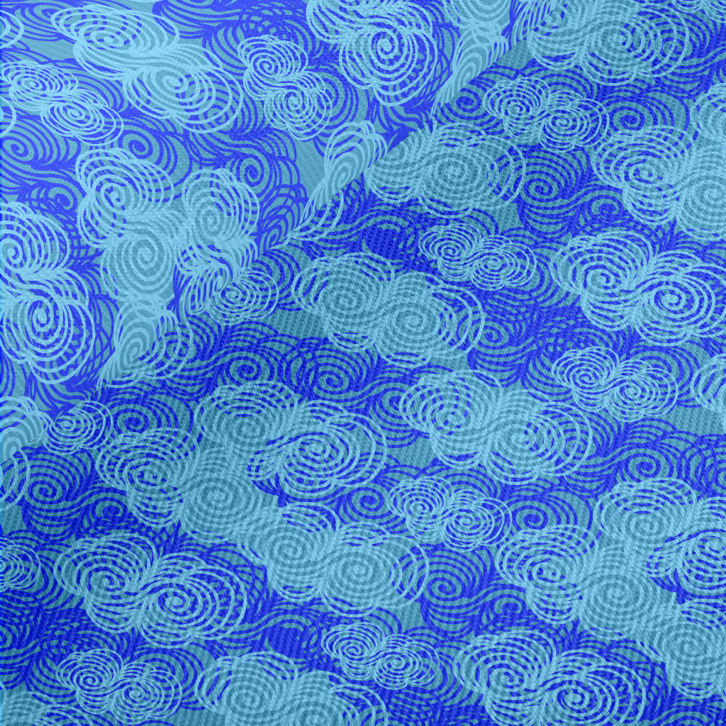 藍色雲朵漩渦圖案厚棉布(幅寬150公分)