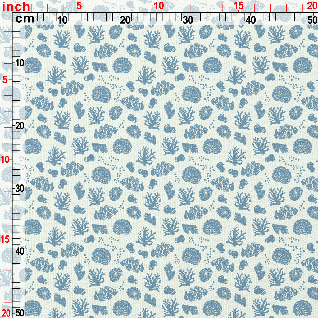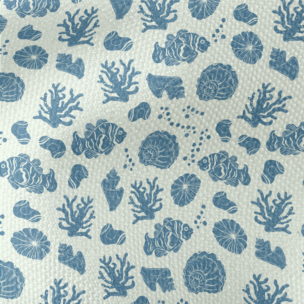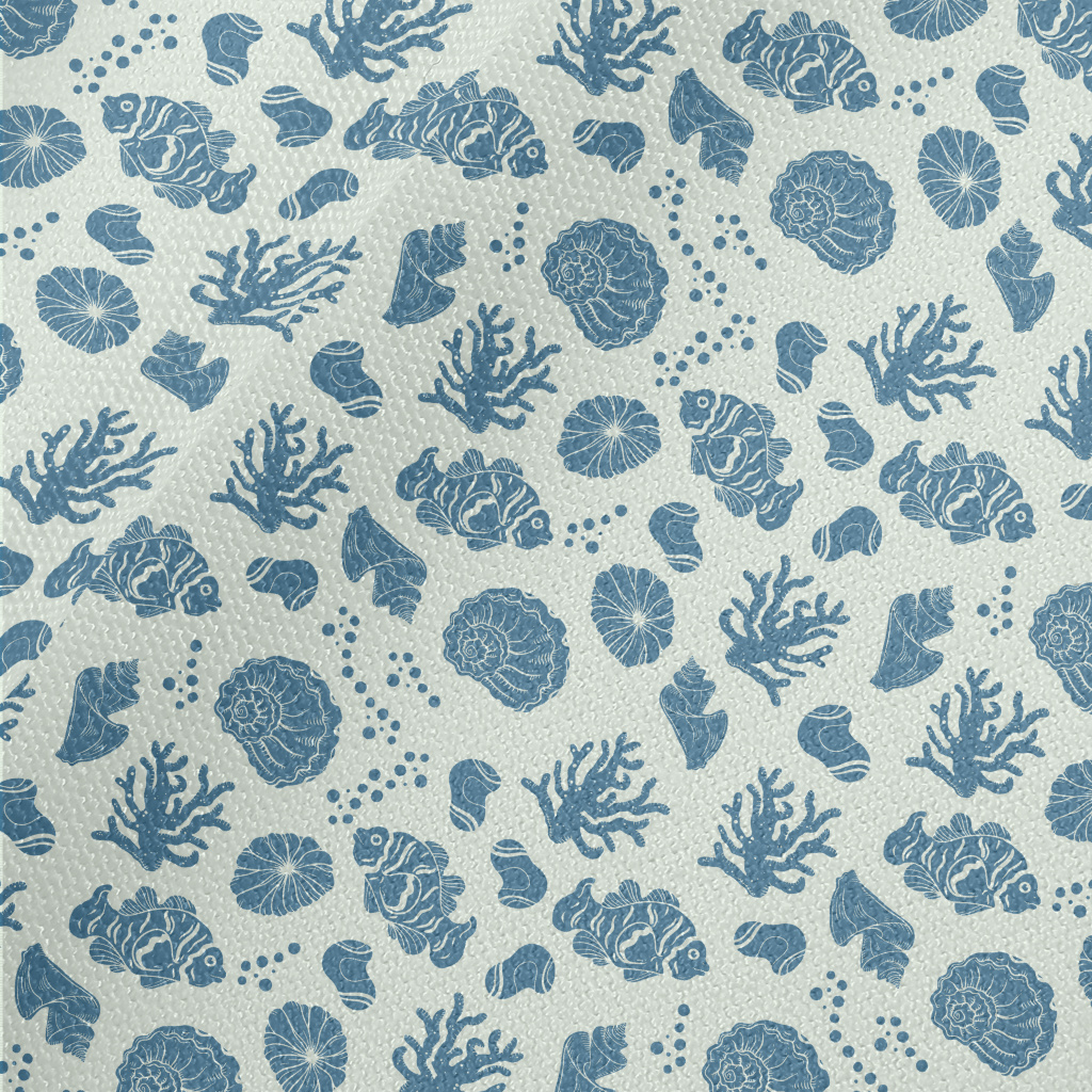 藍色色塊珊瑚貝殼魚類帆布(幅寬150公分)