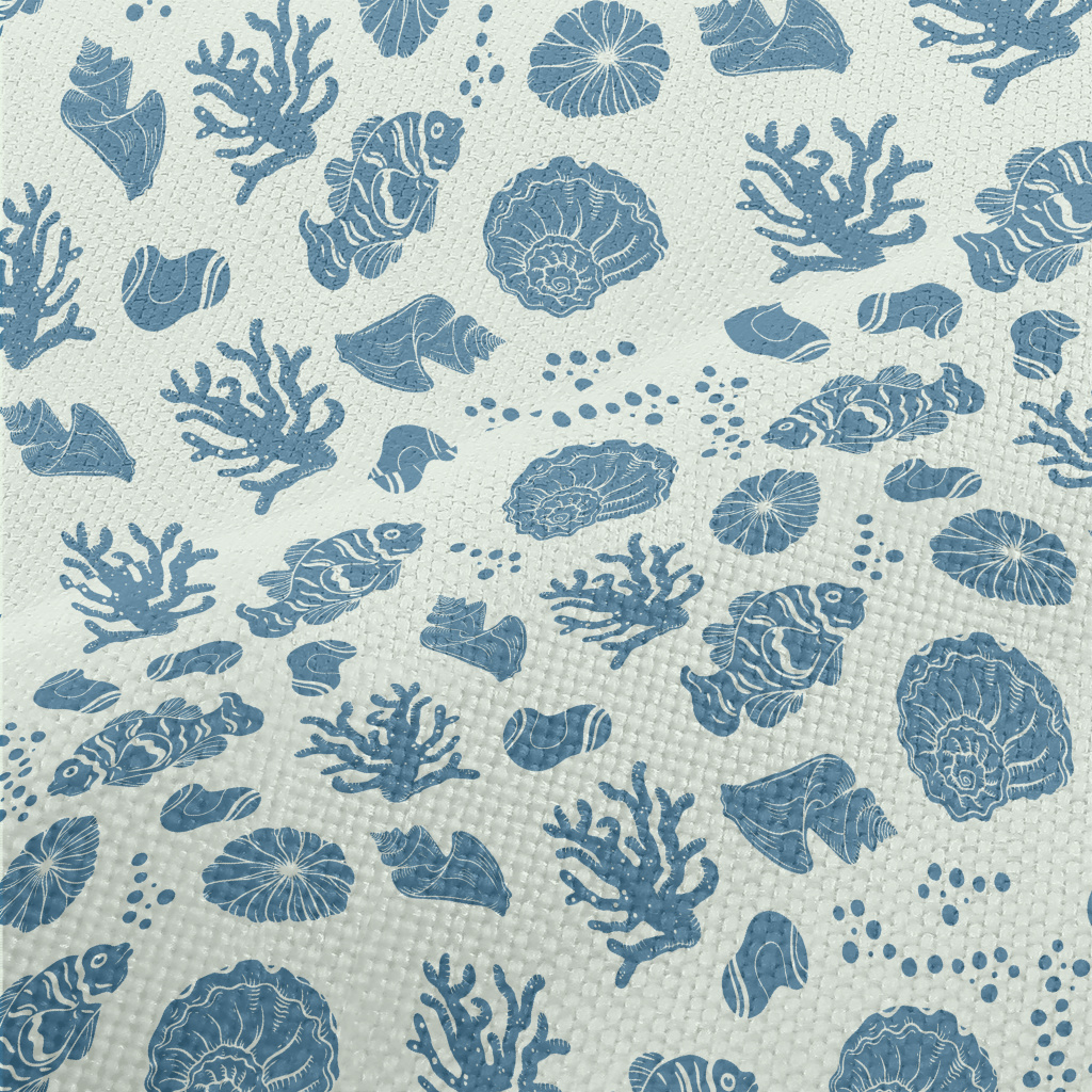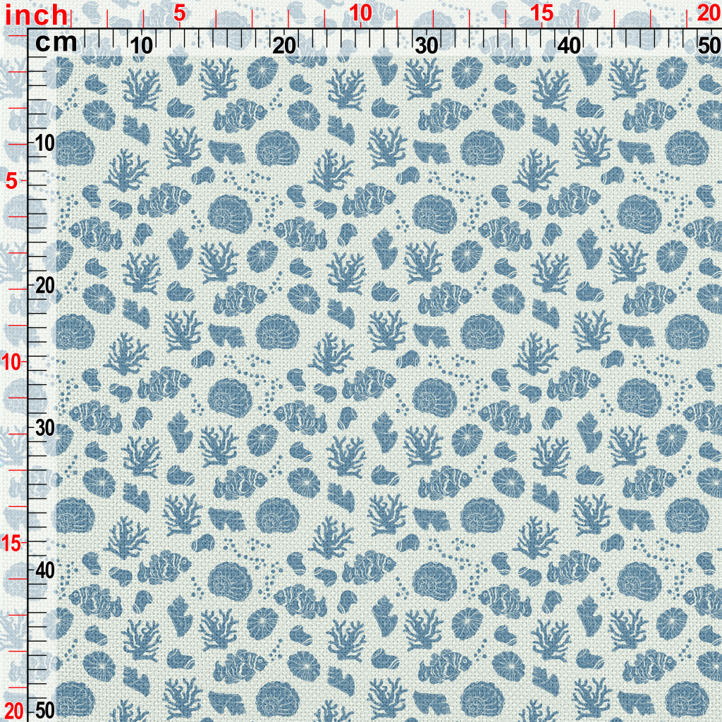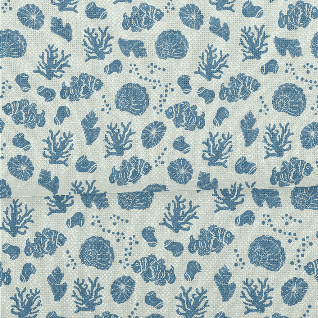 藍色色塊珊瑚貝殼魚類麻布(幅寬150公分)