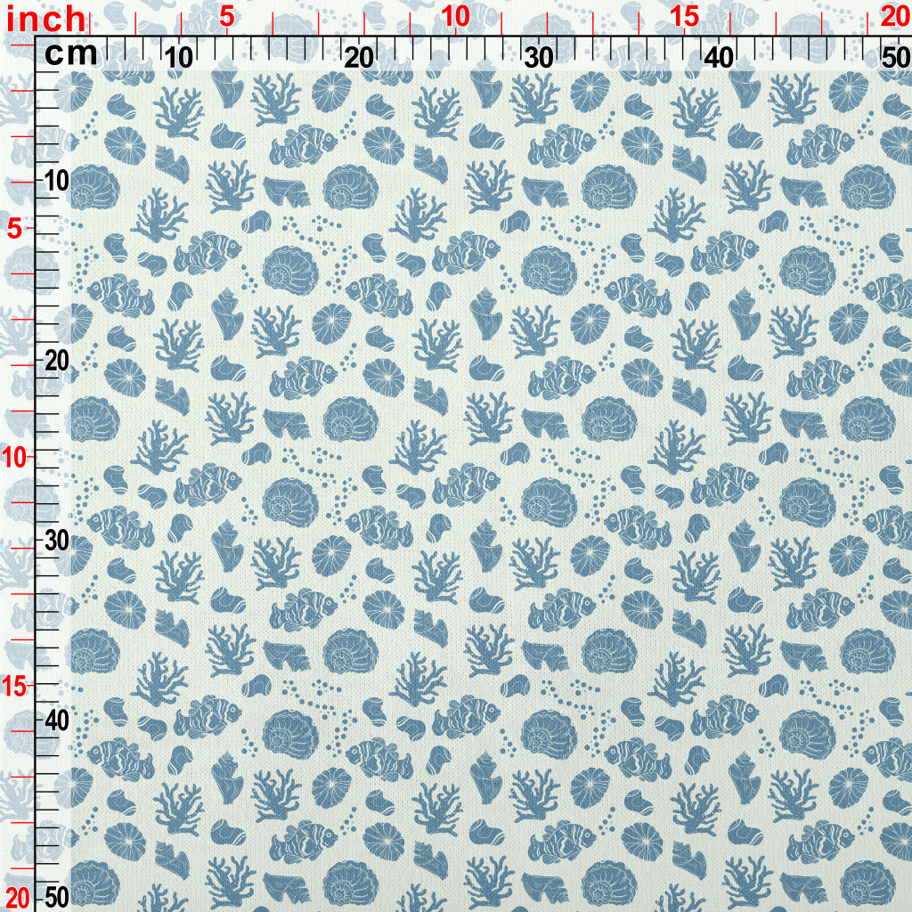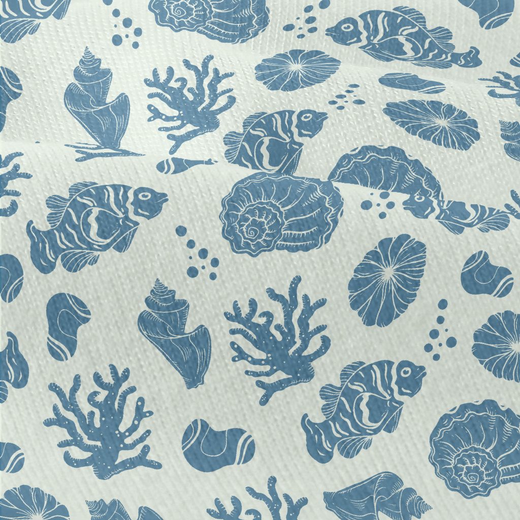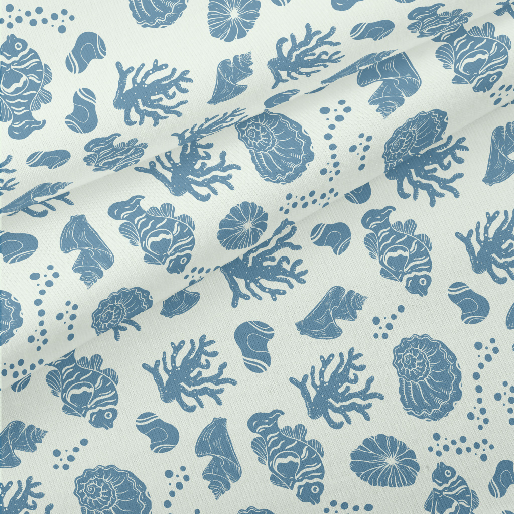 藍色色塊珊瑚貝殼魚類仿棉布(幅寬150公分)