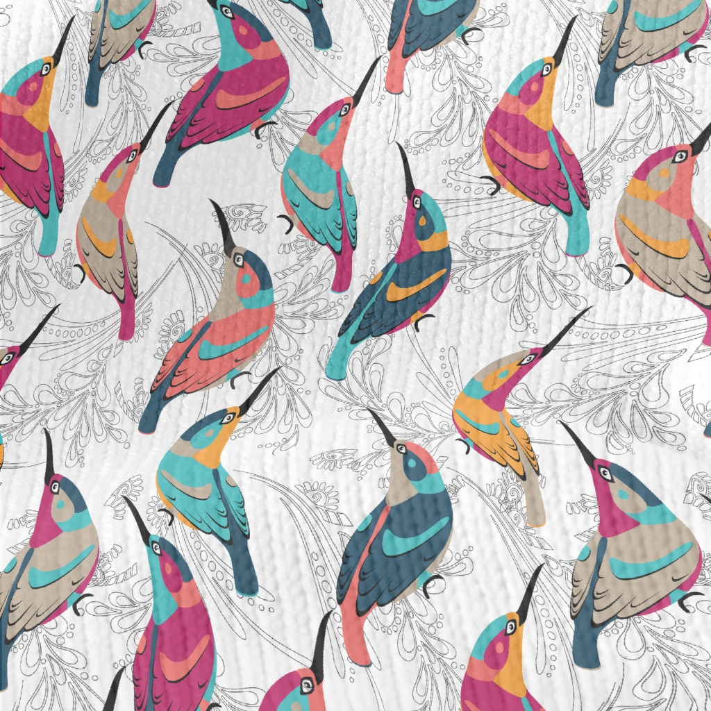 中國風彩色鳥類仿毛衣布(幅寬150公分)