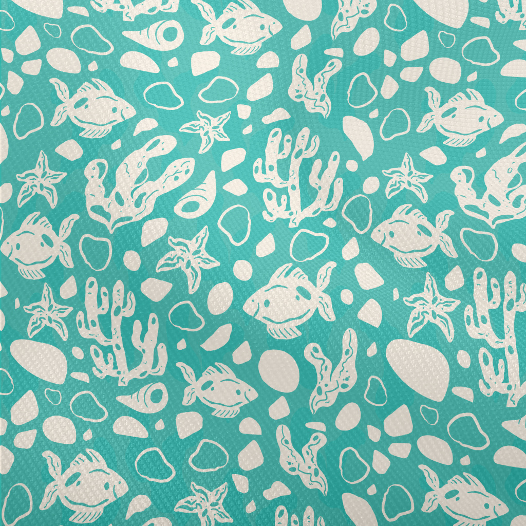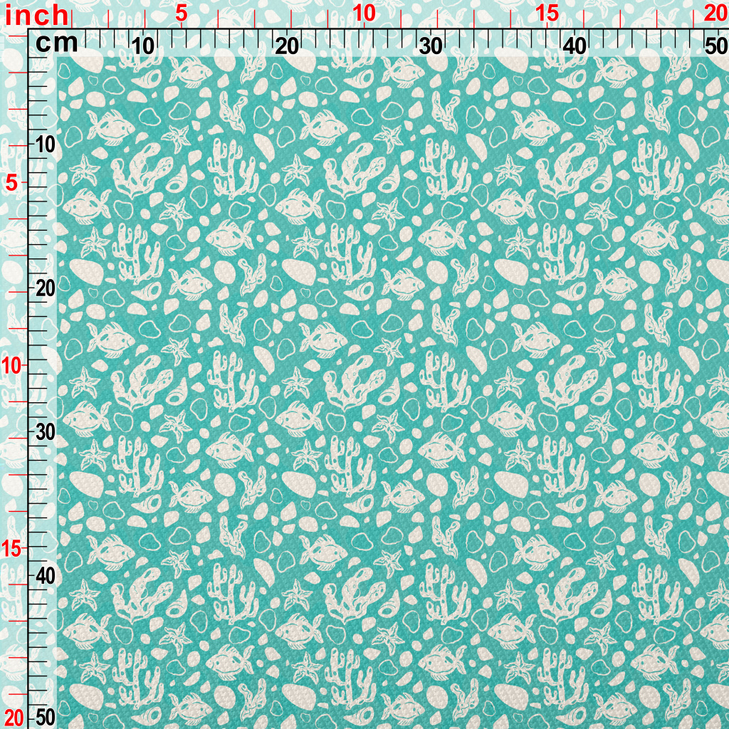 刻印色塊魚類珊瑚海星雙斜布(幅寬150公分)