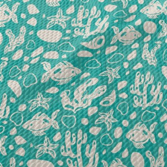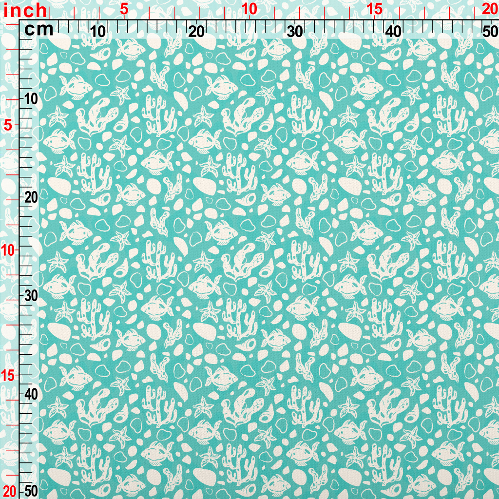 刻印色塊魚類珊瑚海星薄棉布(幅寬150公分)