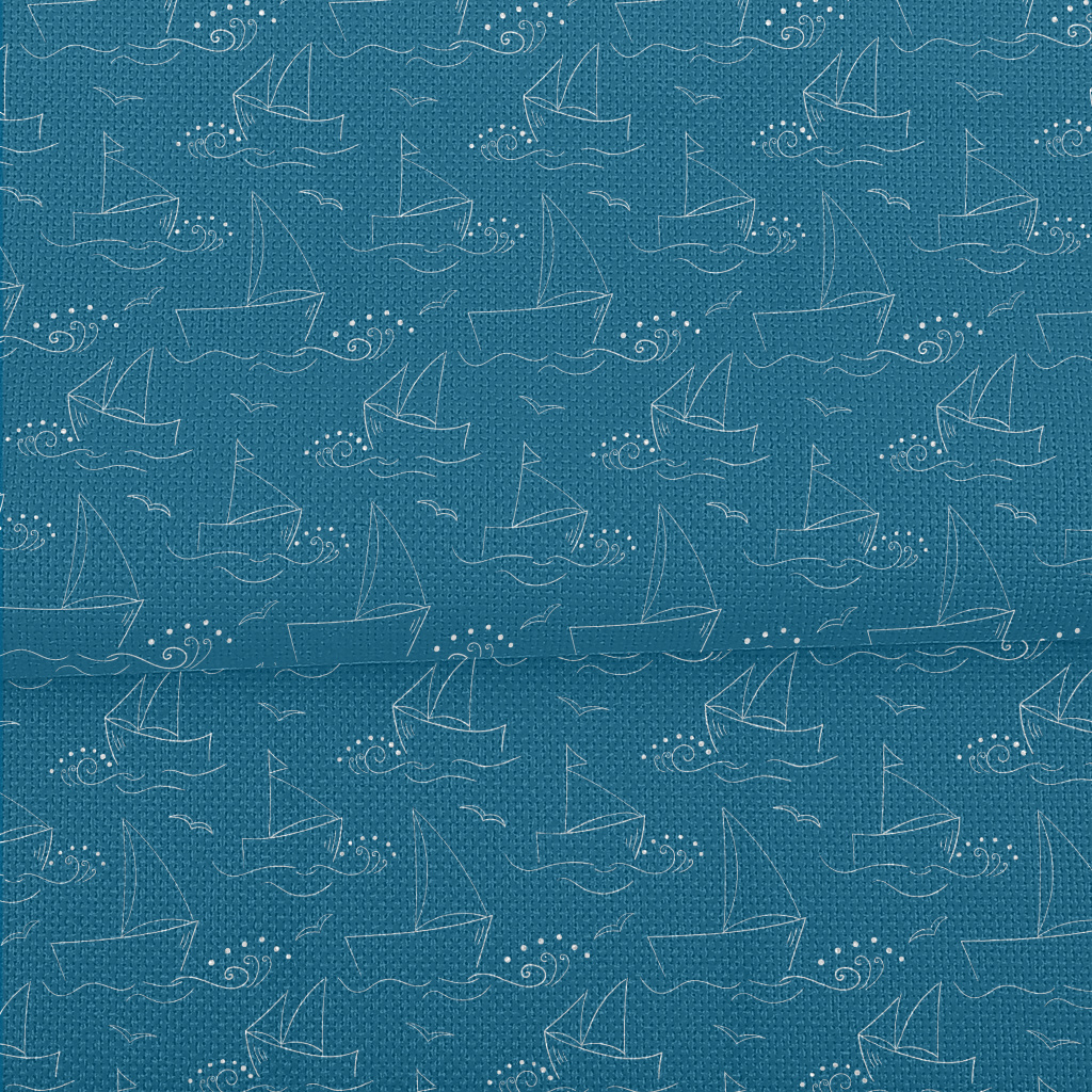 簡約線條帆船與海浪麻布(幅寬150公分)