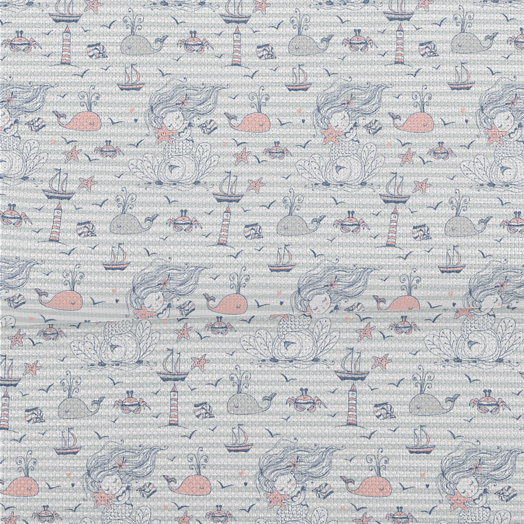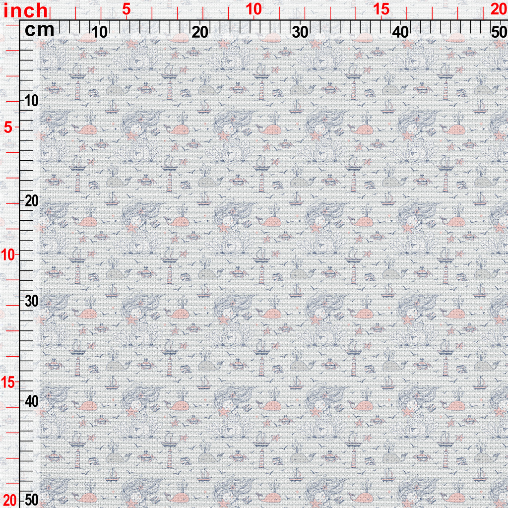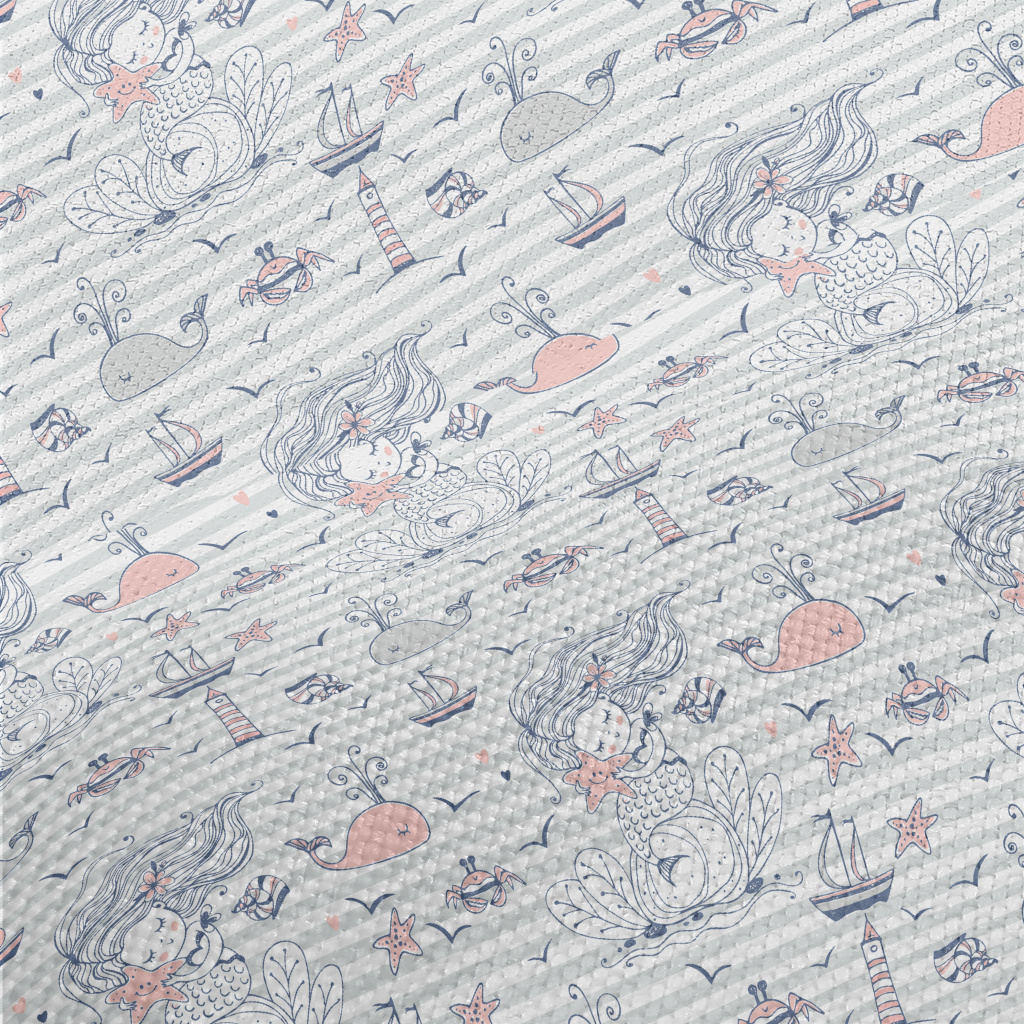 擁抱海星的美人魚麻布(幅寬150公分)