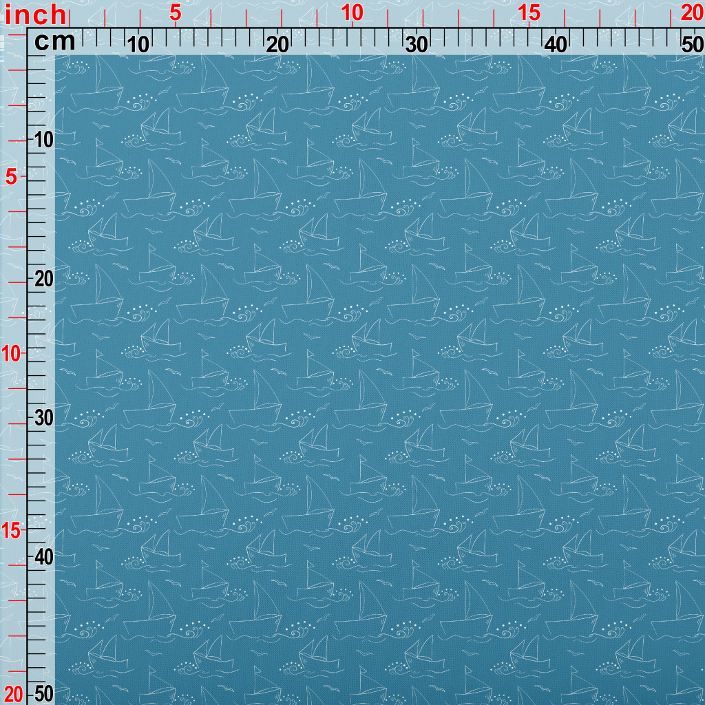 簡約線條帆船與海浪羅馬布(幅寬160公分)