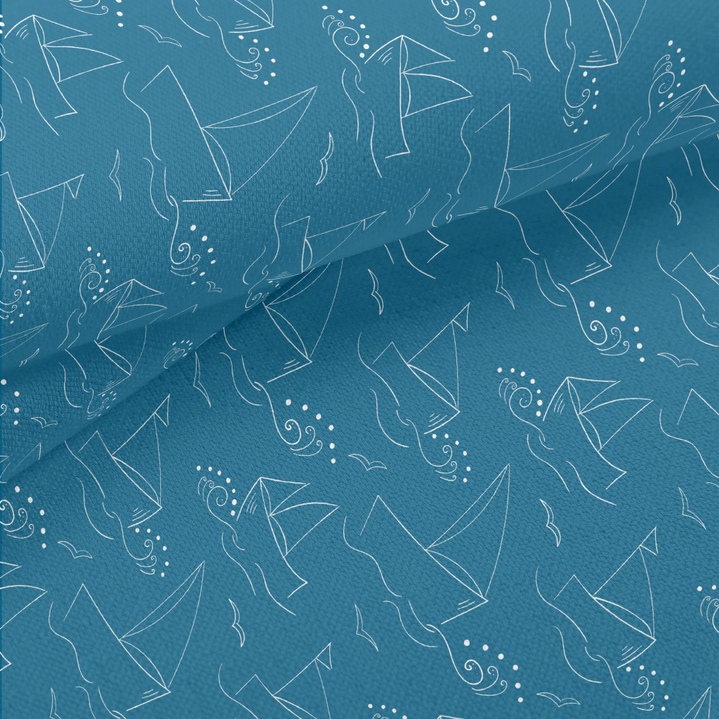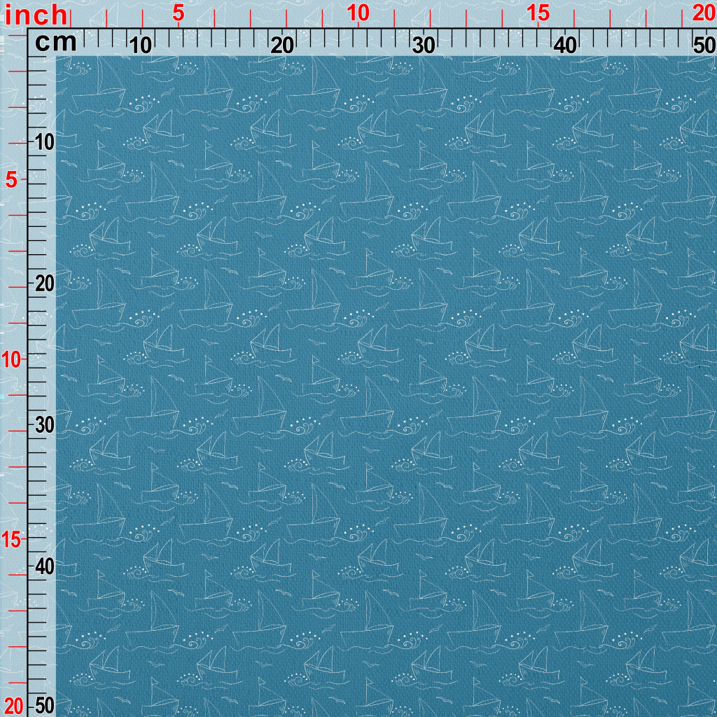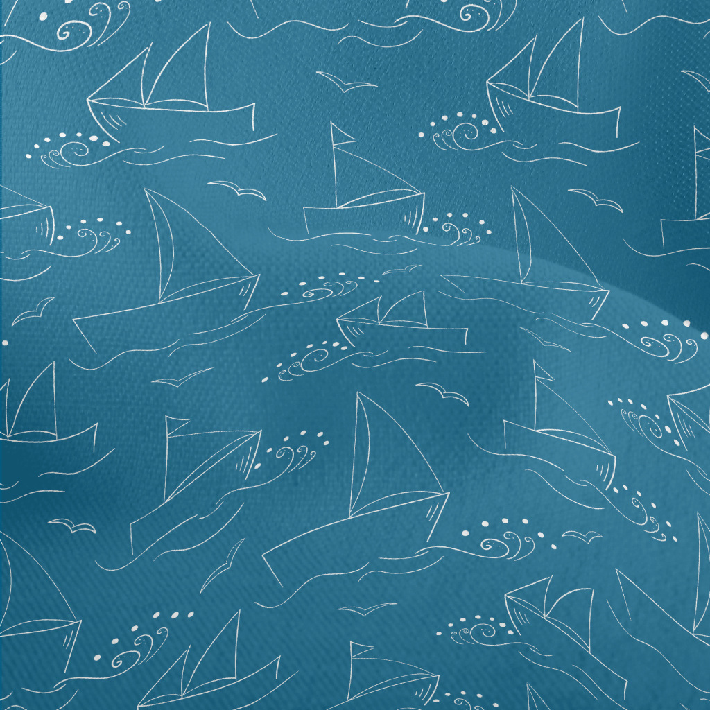 簡約線條帆船與海浪竹節麻(幅寬150公分)