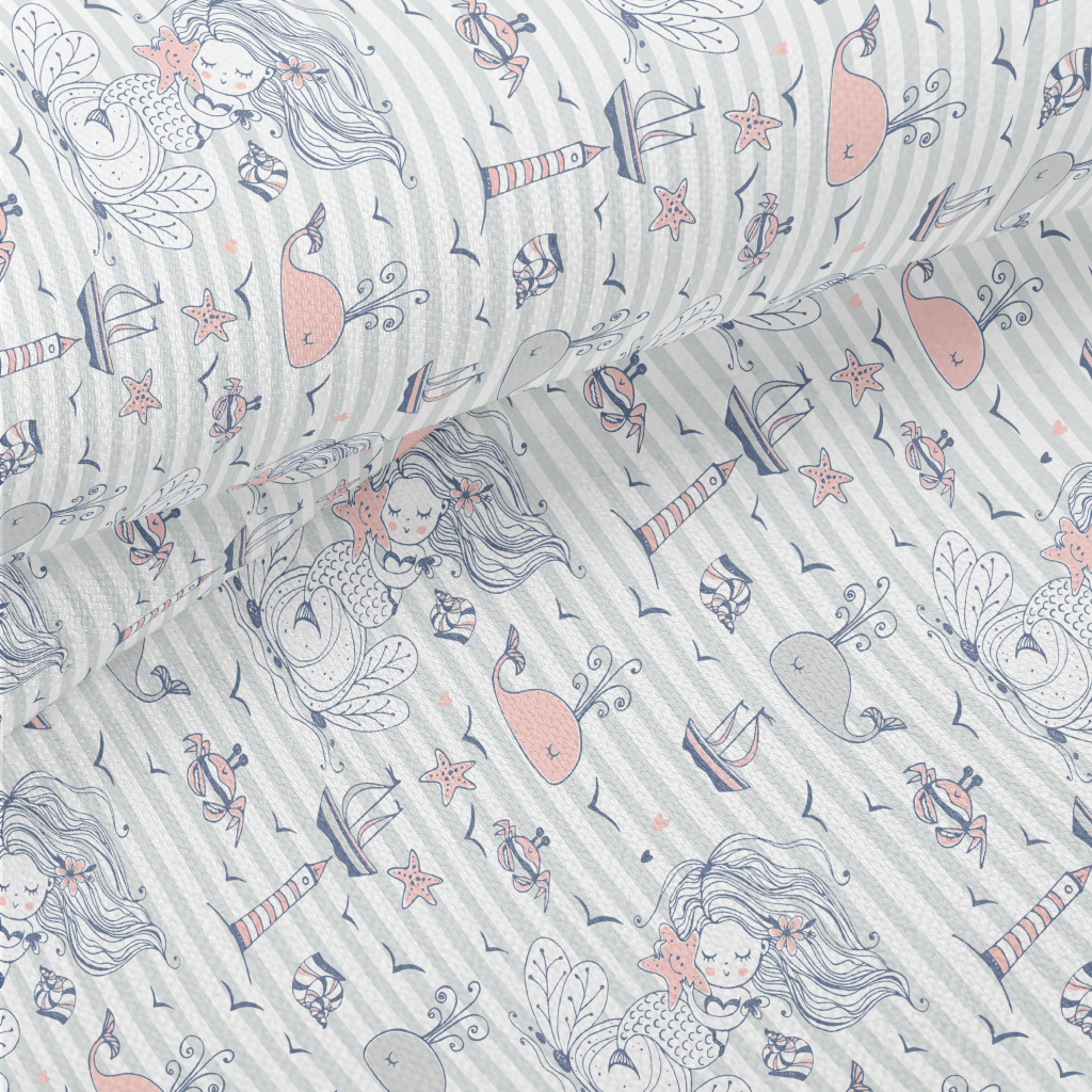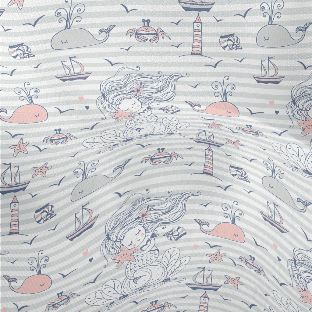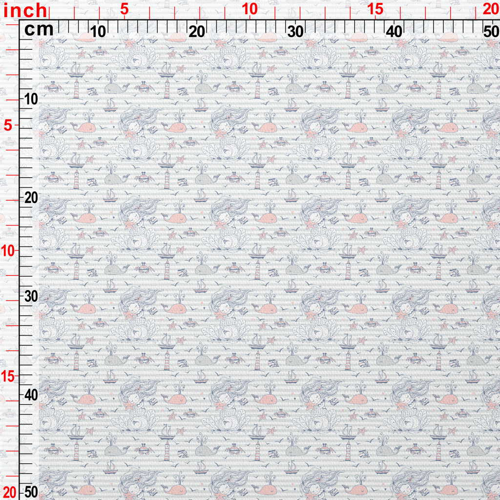 擁抱海星的美人魚竹節麻(幅寬150公分)