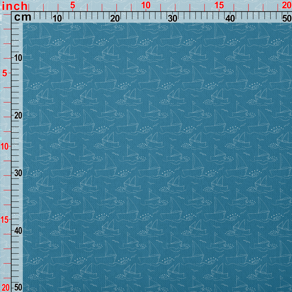 簡約線條帆船與海浪刷毛布(幅寬150公分)