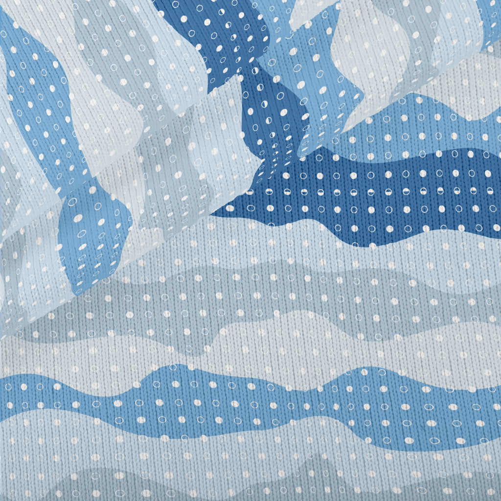 白色圓點和藍色色塊仿毛衣布(幅寬150公分)