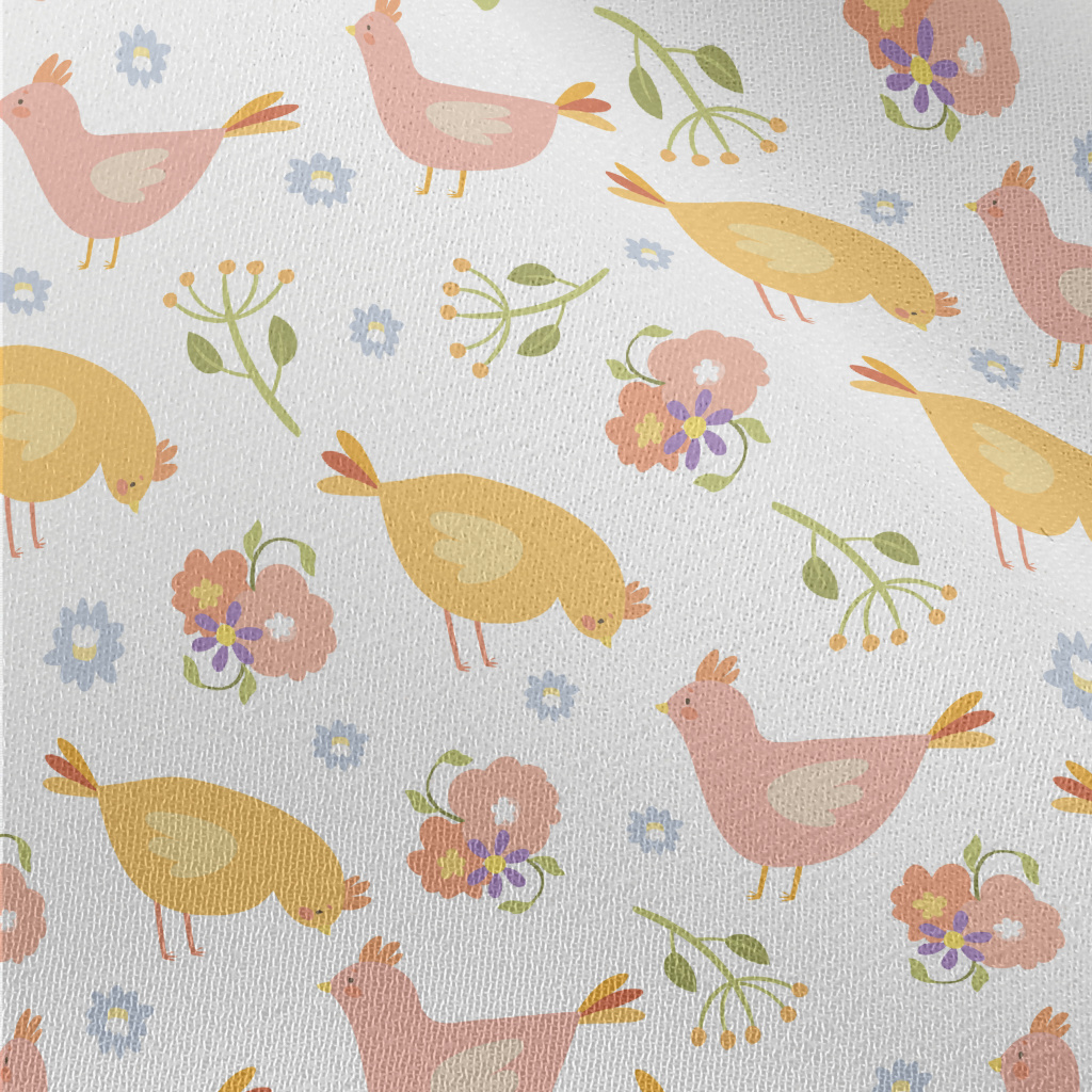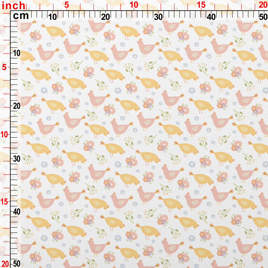 溫和色彩雞群與花朵雪紡布(幅寬150公分)
