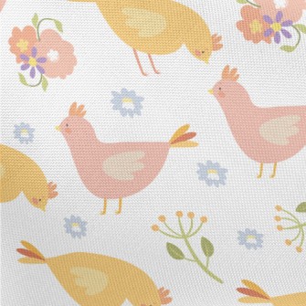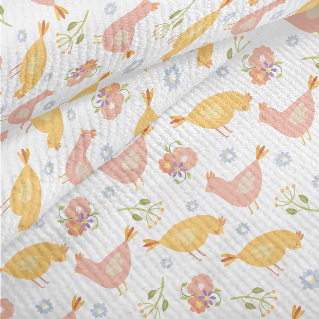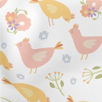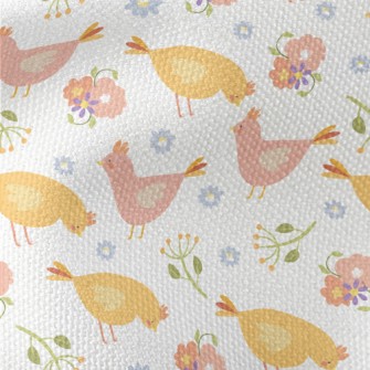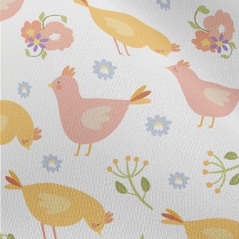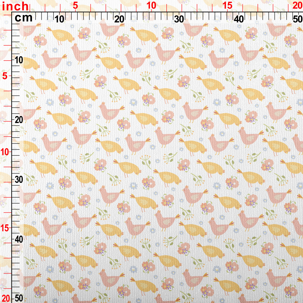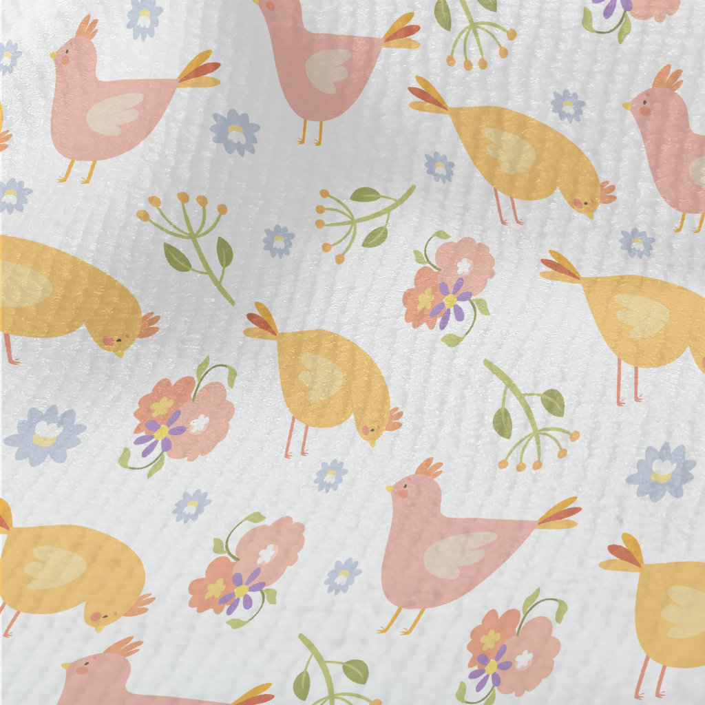 溫和色彩雞群與花朵毛巾布(幅寬160公分)