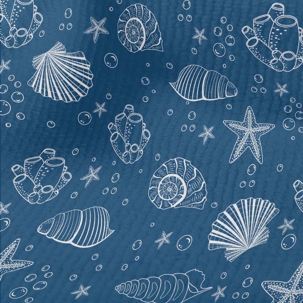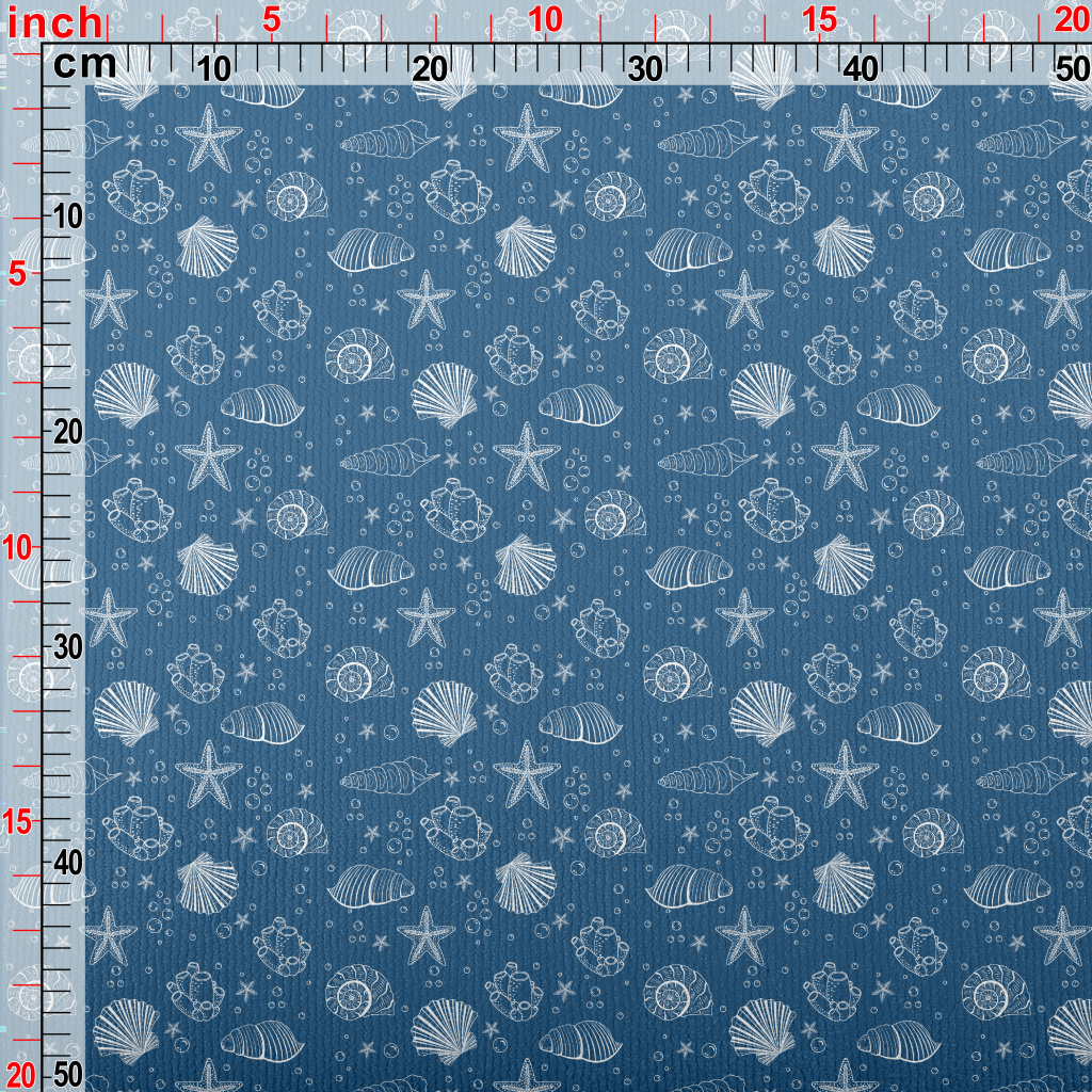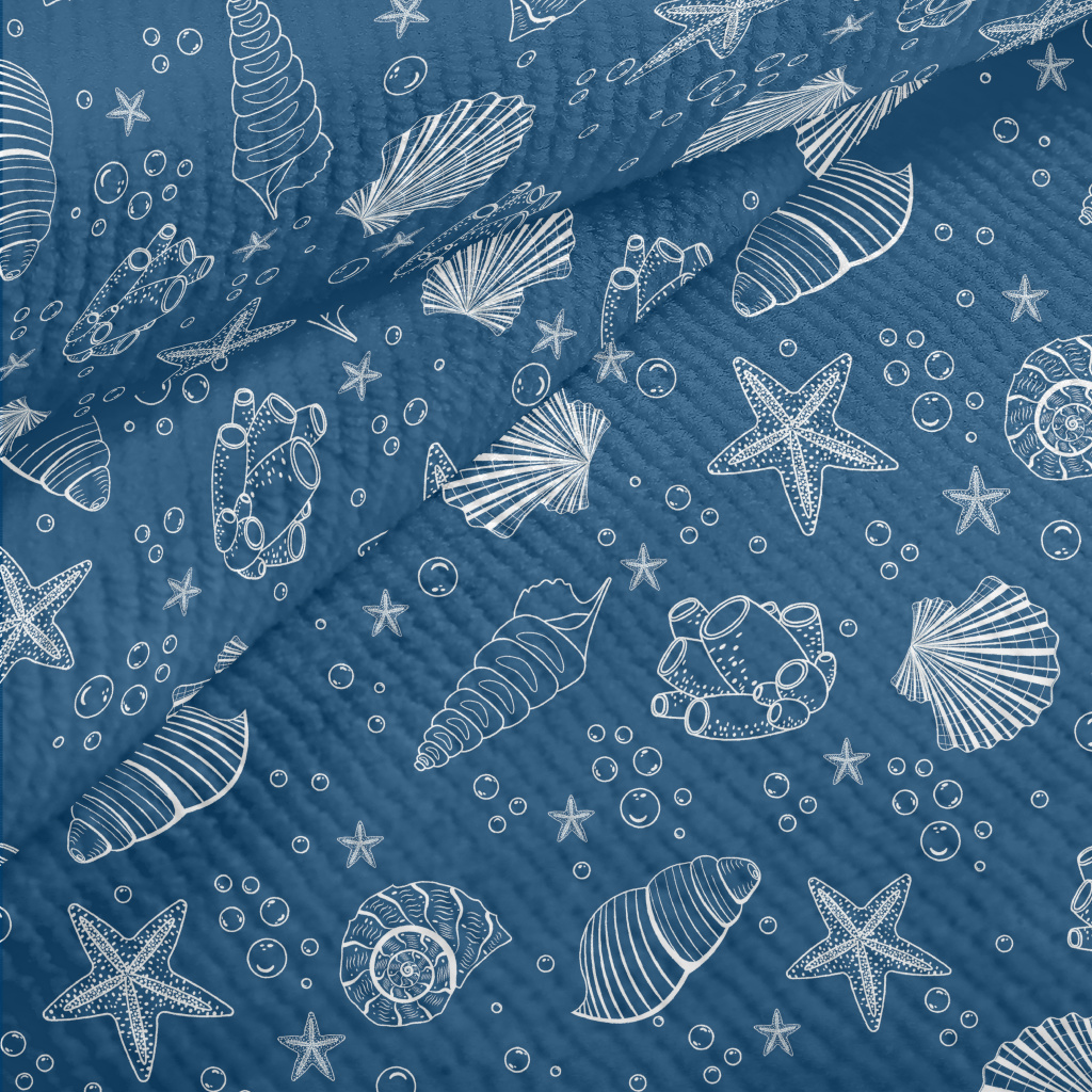 白色線條貝殼和海星毛巾布(幅寬160公分)