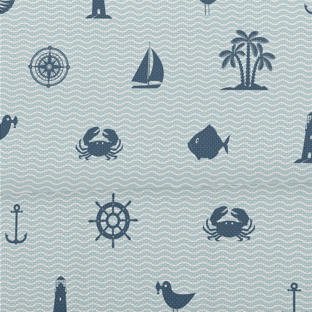 帆船螃蟹海鷗燈塔貝殼麻布(幅寬150公分)