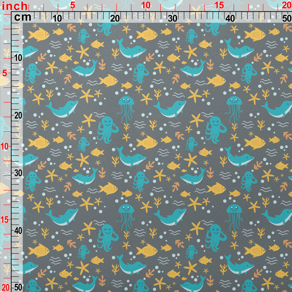 兒童可愛海洋生物斜紋布(幅寬150公分)