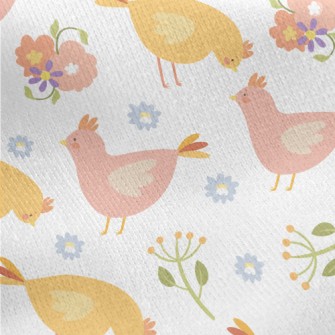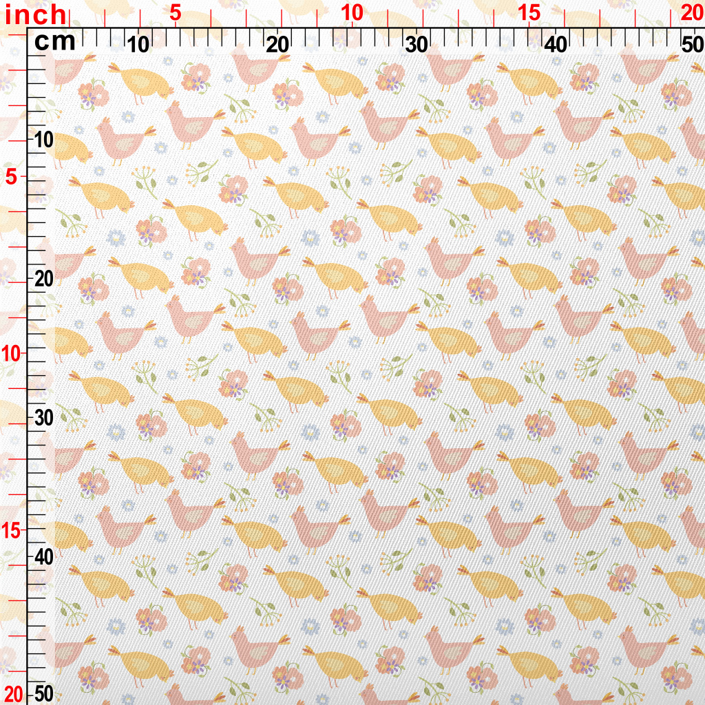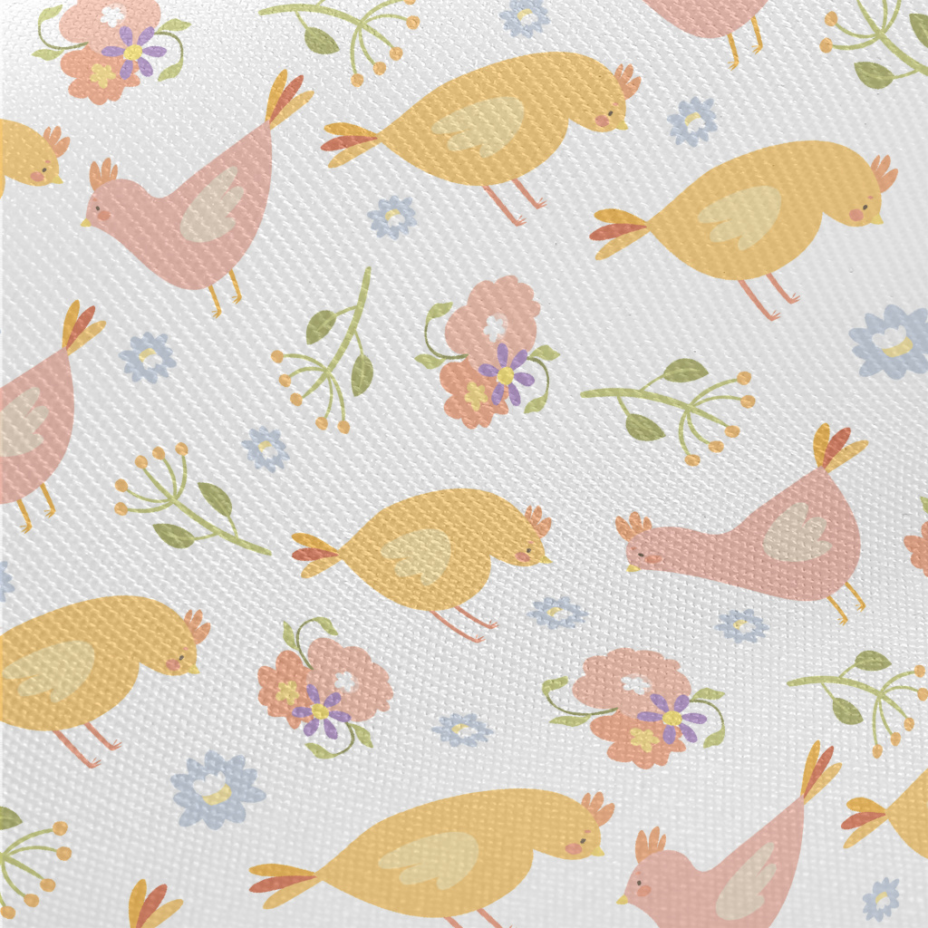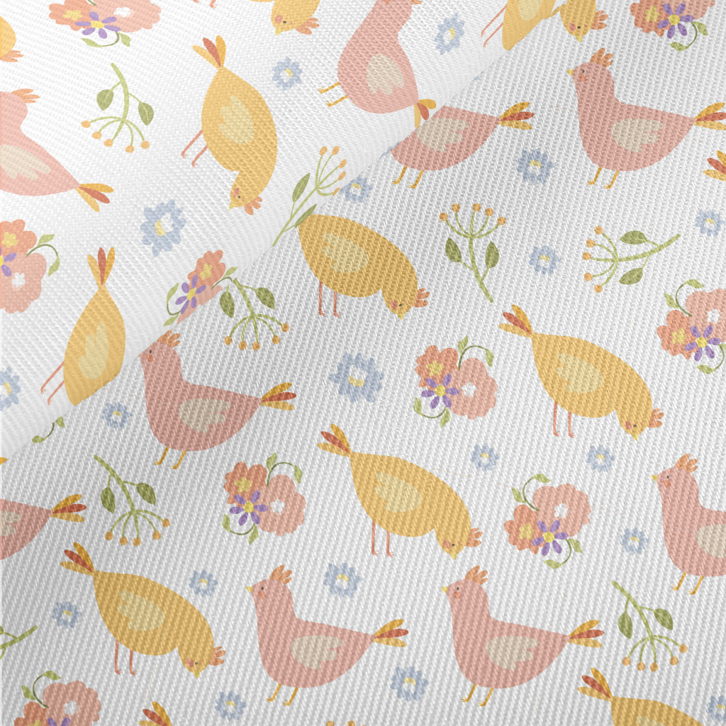 溫和色彩雞群與花朵斜紋布(幅寬150公分)