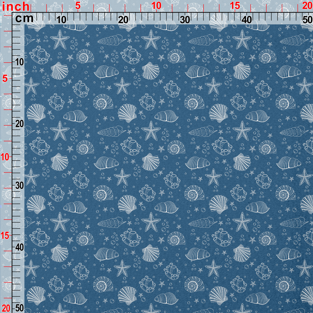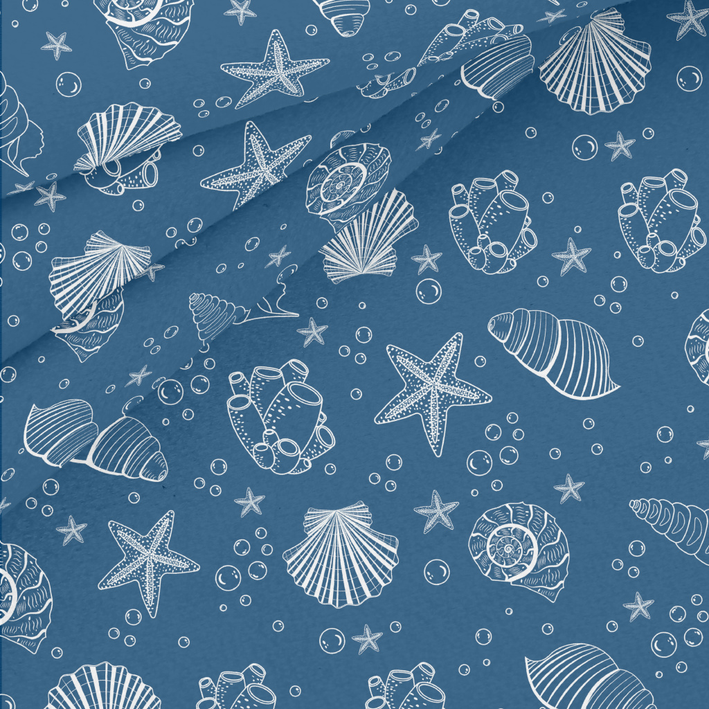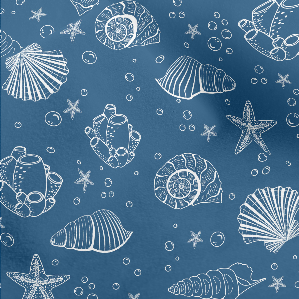 白色線條貝殼和海星水晶絨(幅寬160公分)