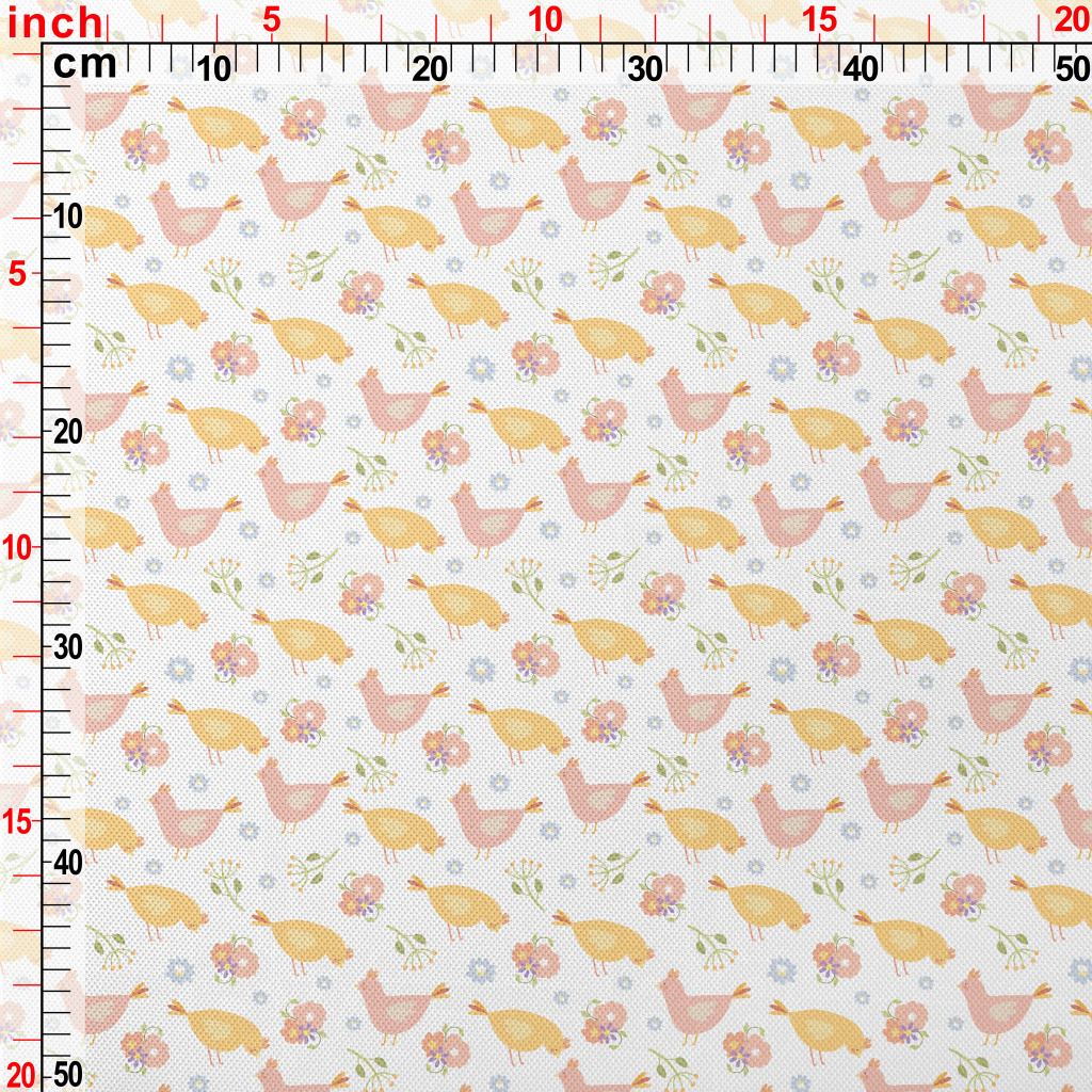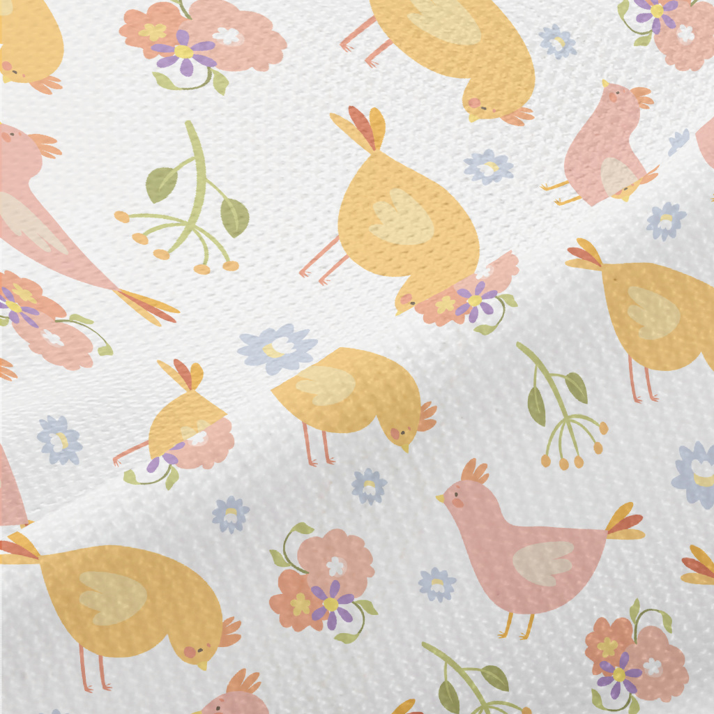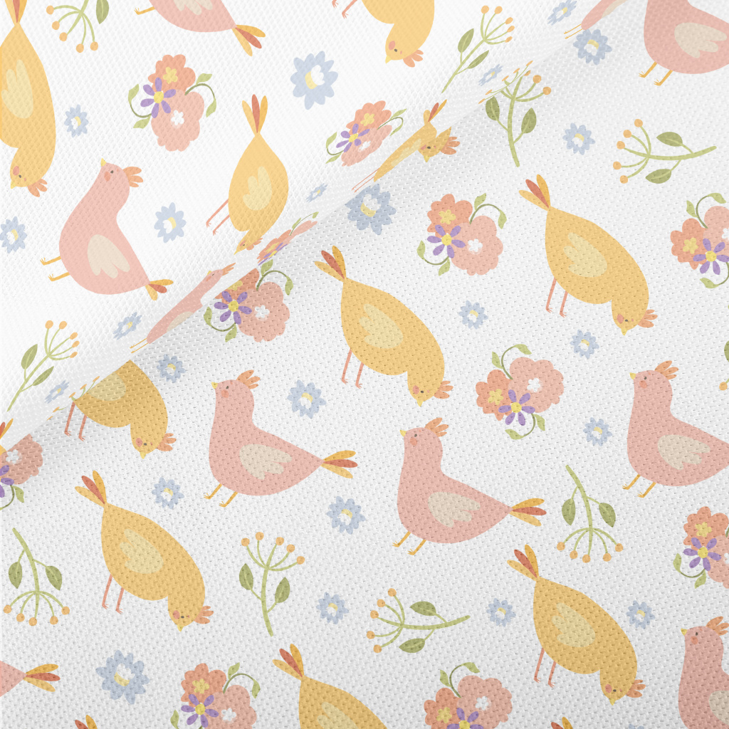 溫和色彩雞群與花朵高爾布(幅寬180公分)
