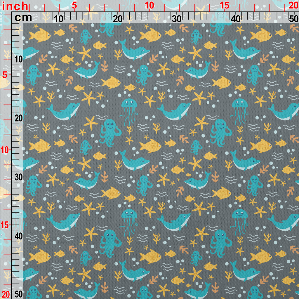 兒童可愛海洋生物仿棉布(幅寬150公分)