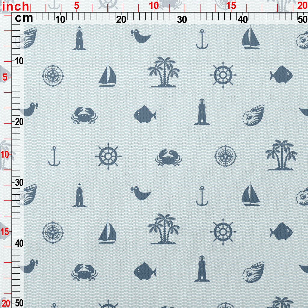 帆船螃蟹海鷗燈塔貝殼仿棉布(幅寬150公分)