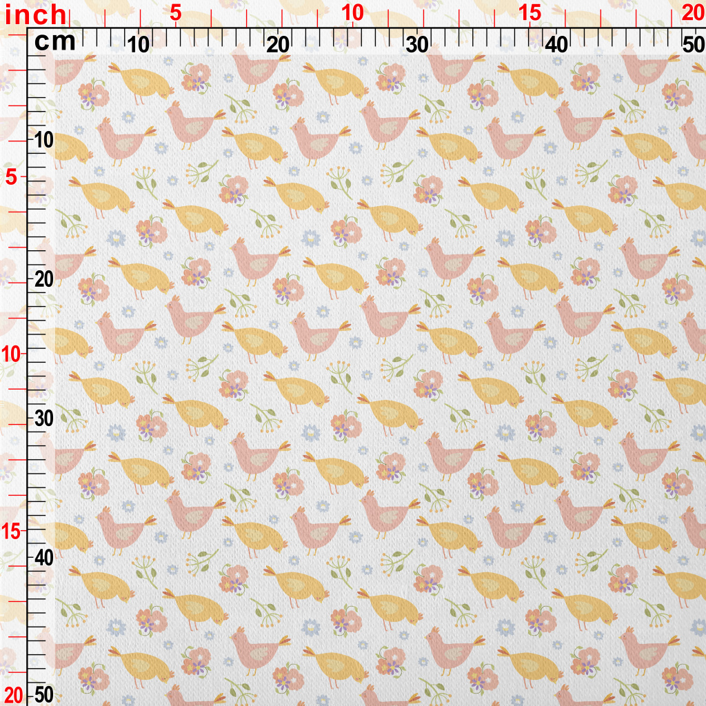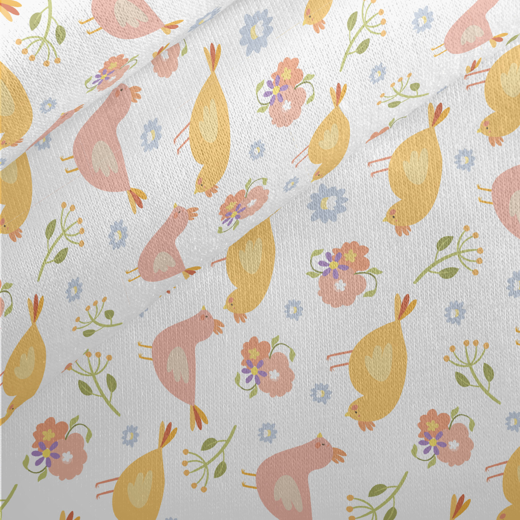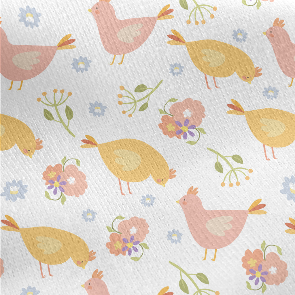 溫和色彩雞群與花朵刷毛布(幅寬150公分)
