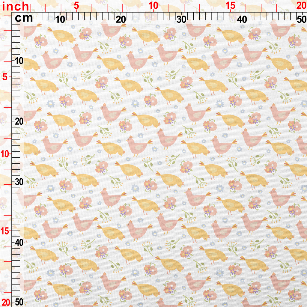 溫和色彩雞群與花朵春亞紡(幅寬160公分)