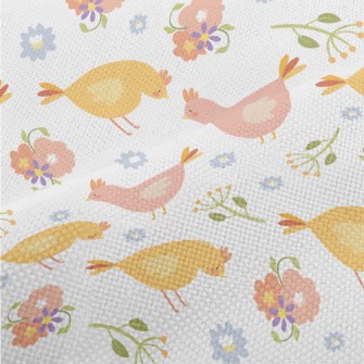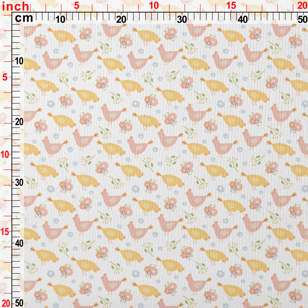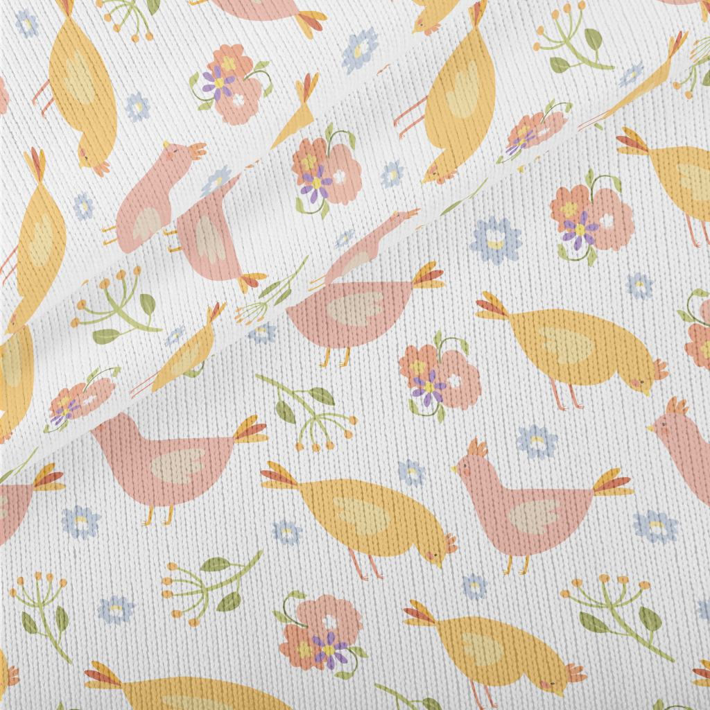 溫和色彩雞群與花朵仿毛衣布(幅寬150公分)