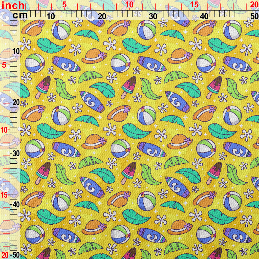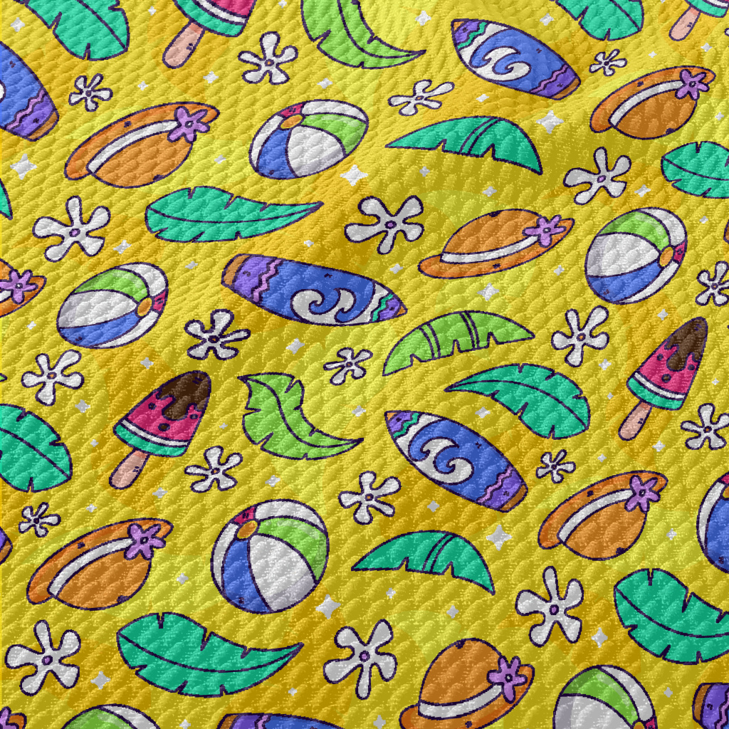 卡通海灘球帽子熱帶植物泡泡布(幅寬160公分)
