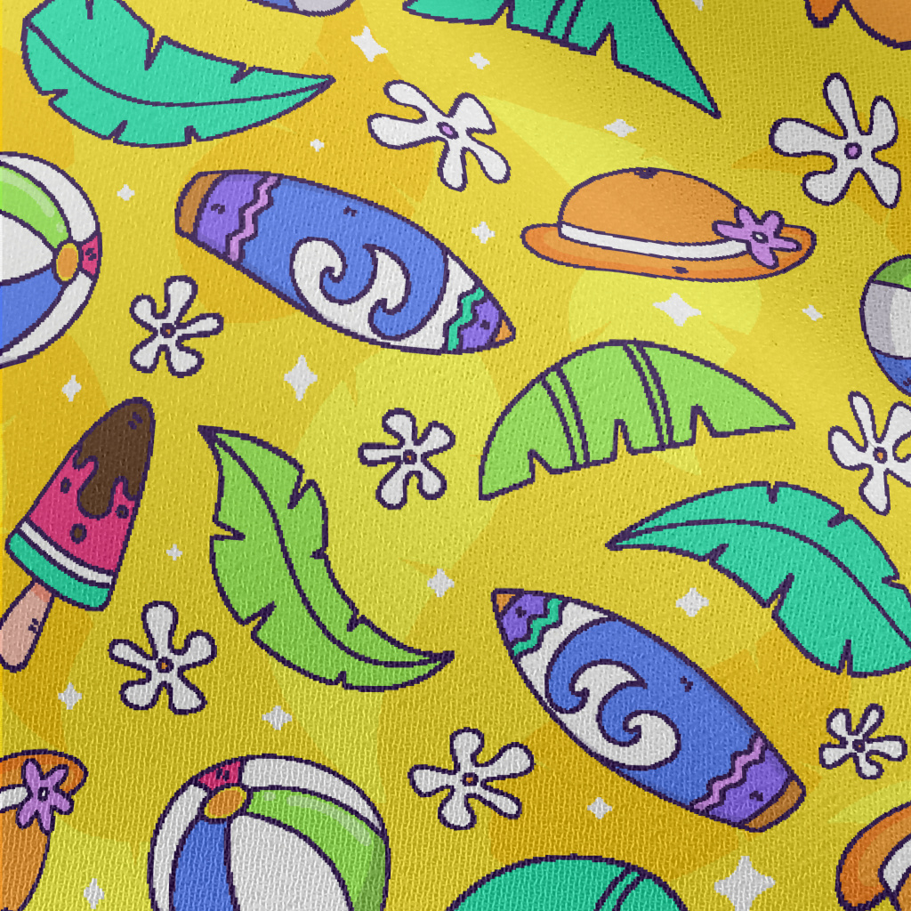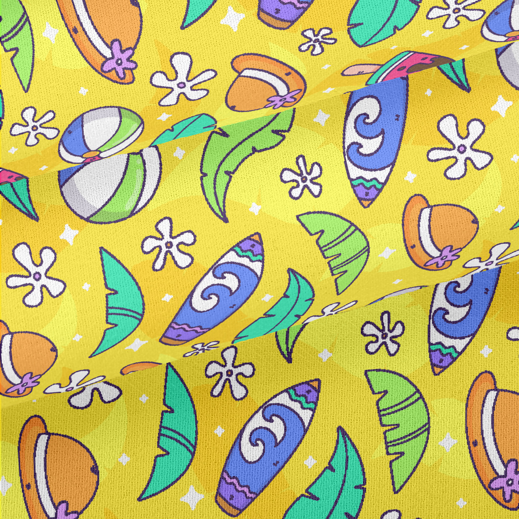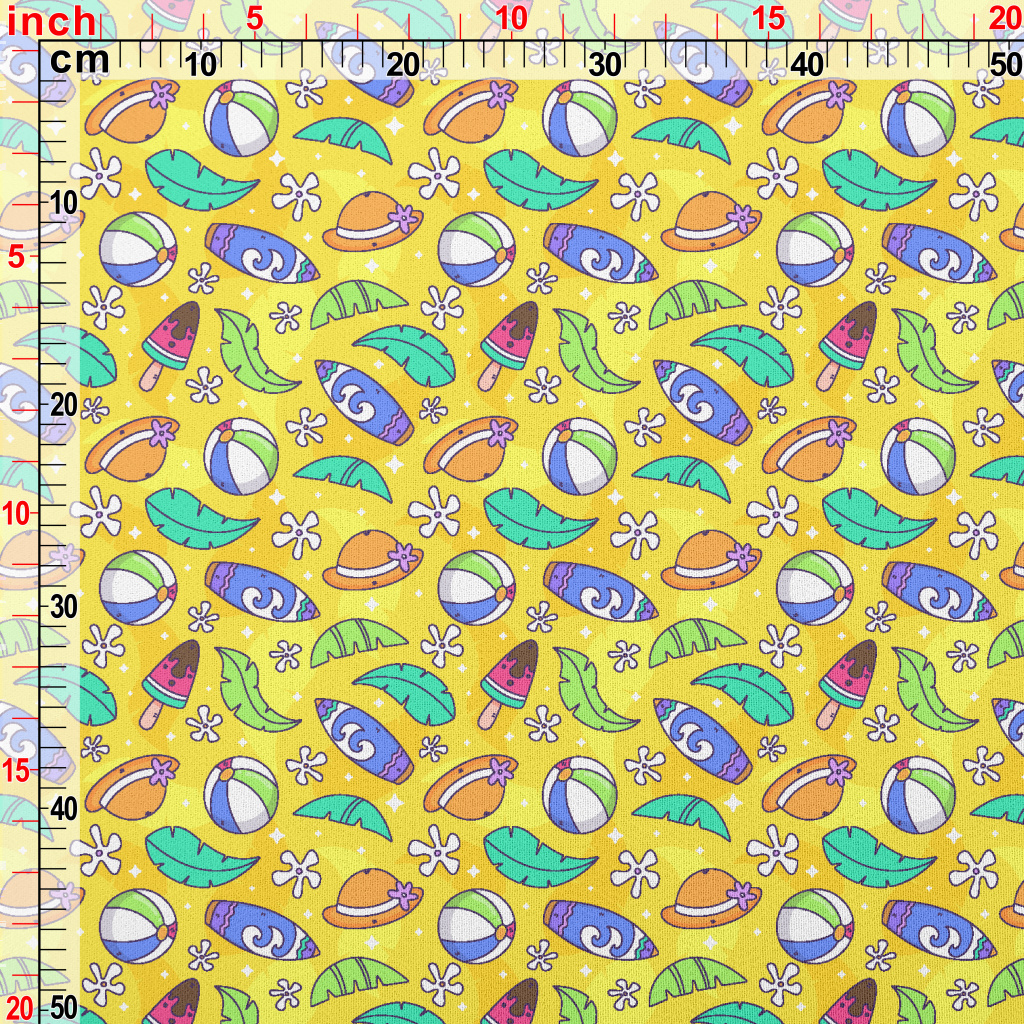 卡通海灘球帽子熱帶植物雪紡布(幅寬150公分)