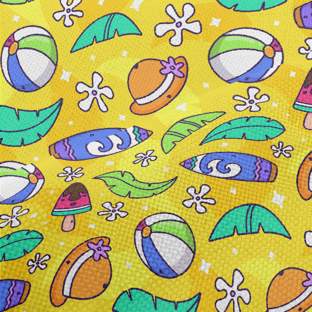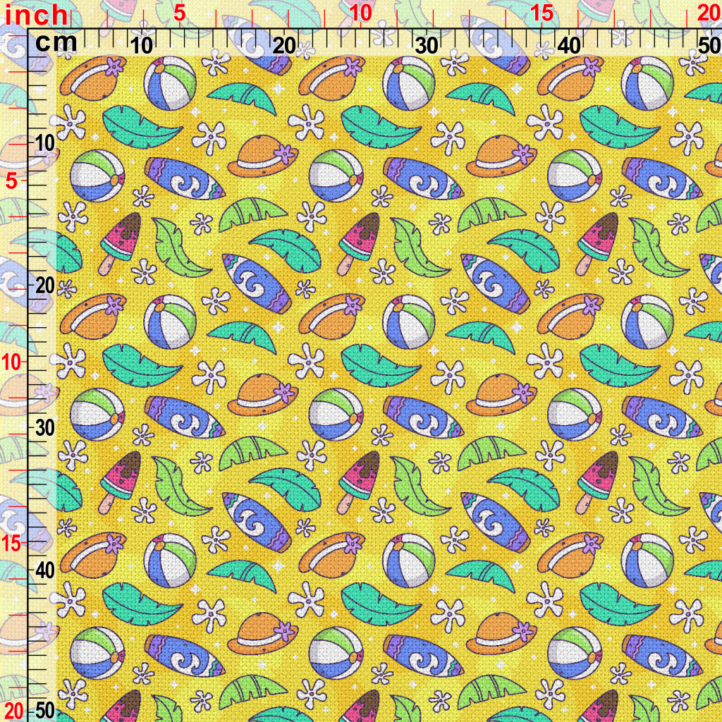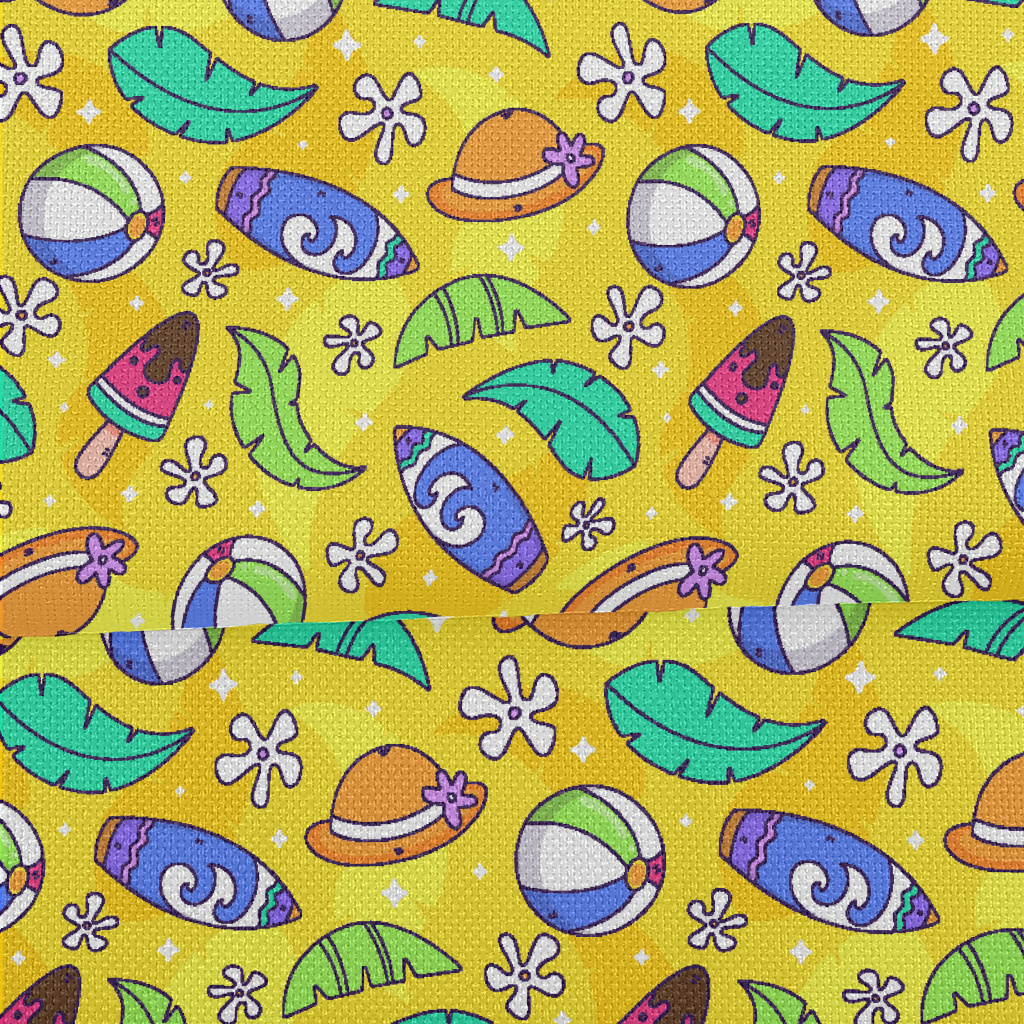 卡通海灘球帽子熱帶植物麻布(幅寬150公分)