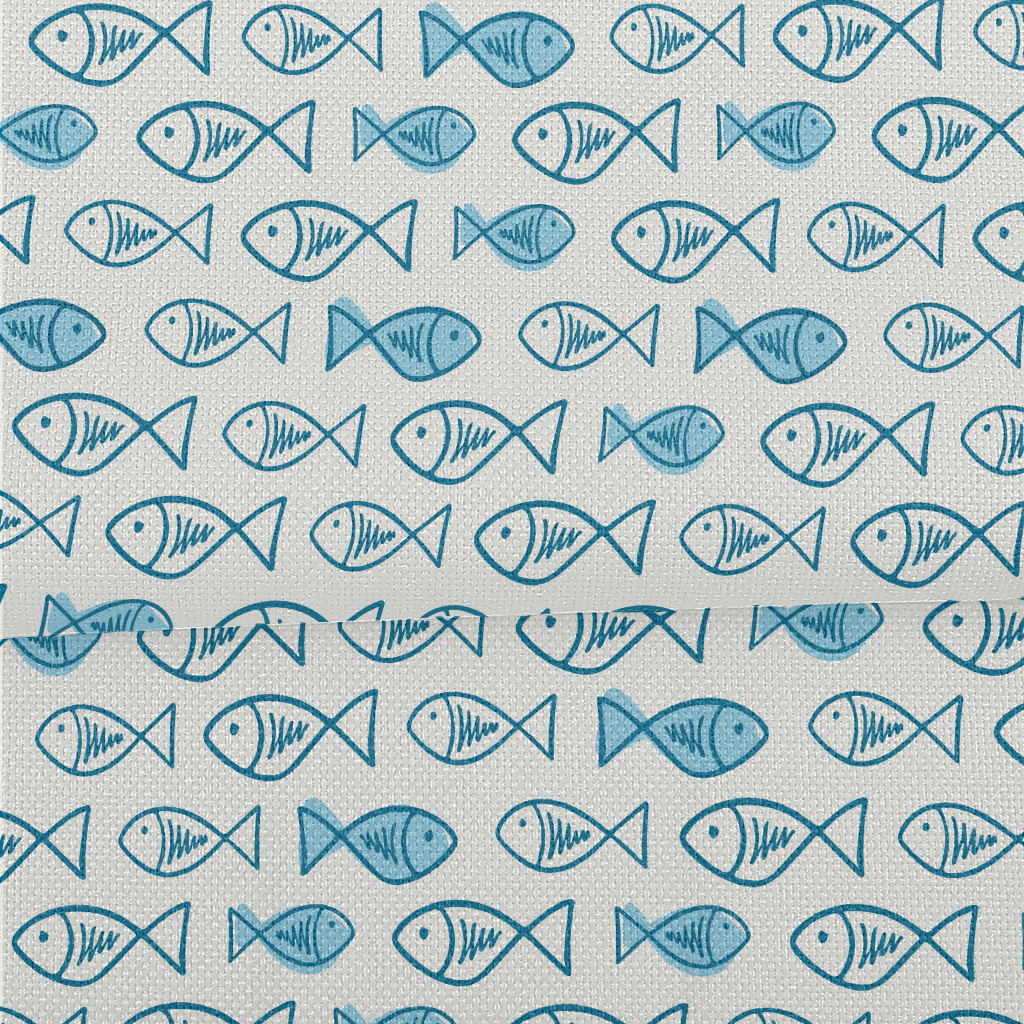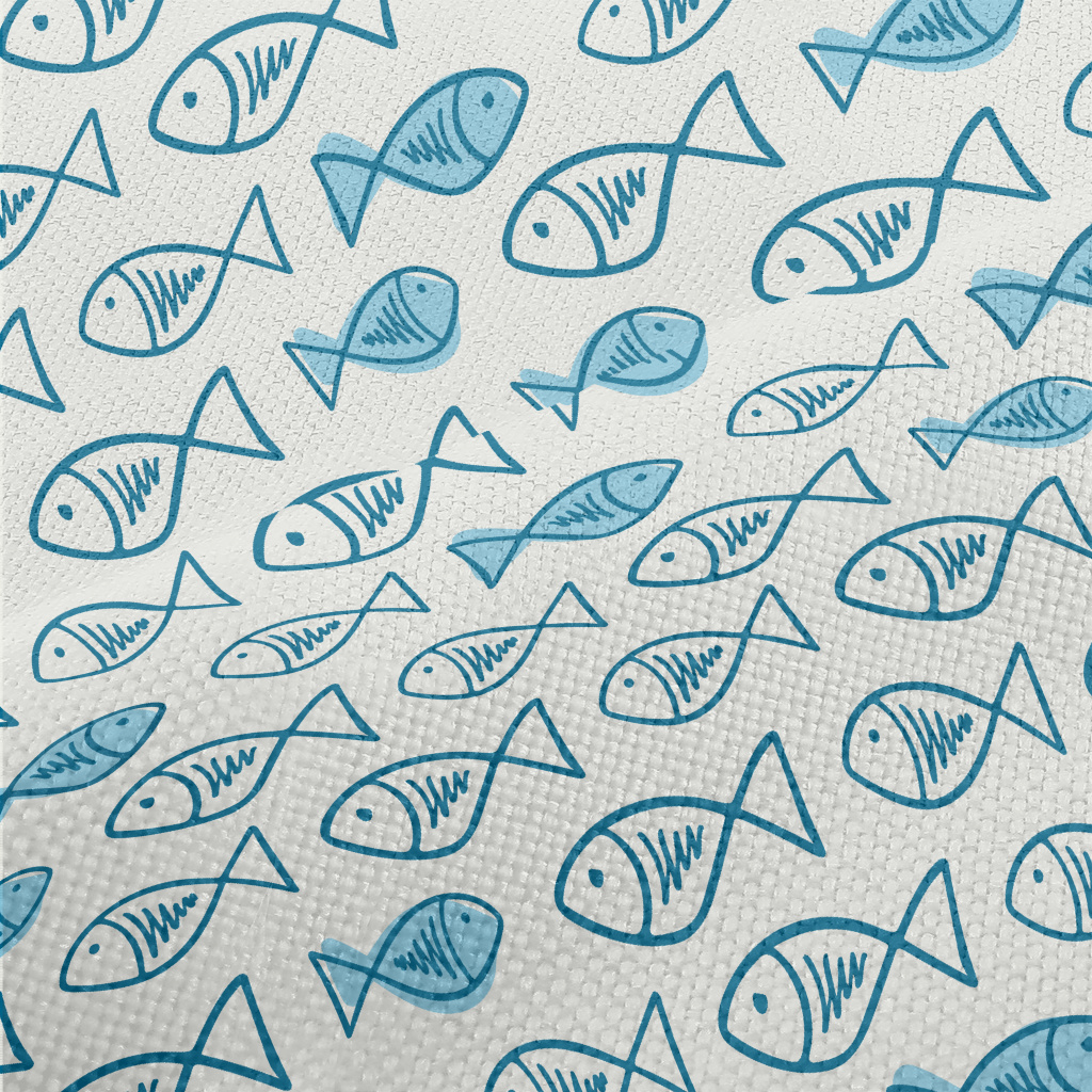 簡潔塗鴉小魚麻布(幅寬150公分)